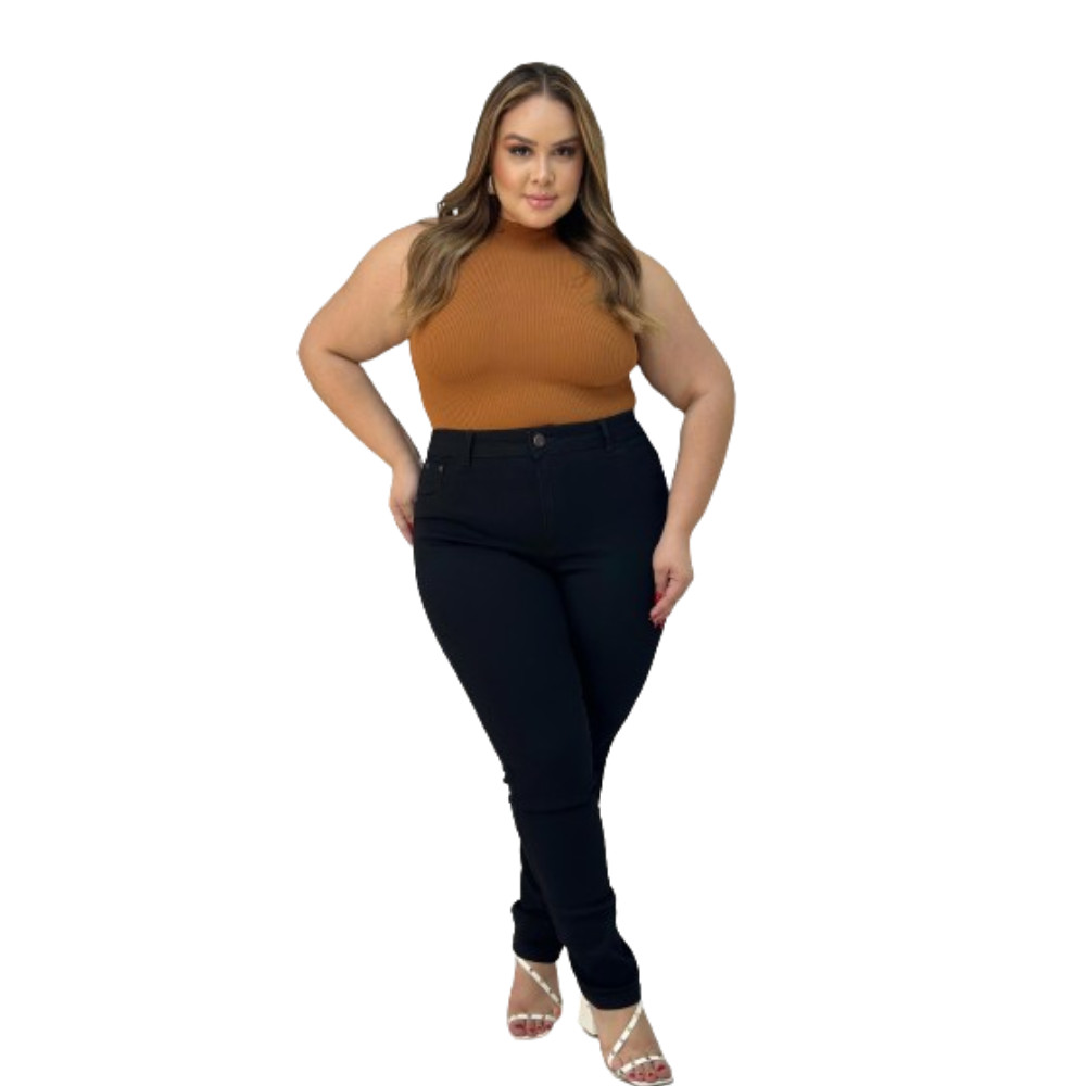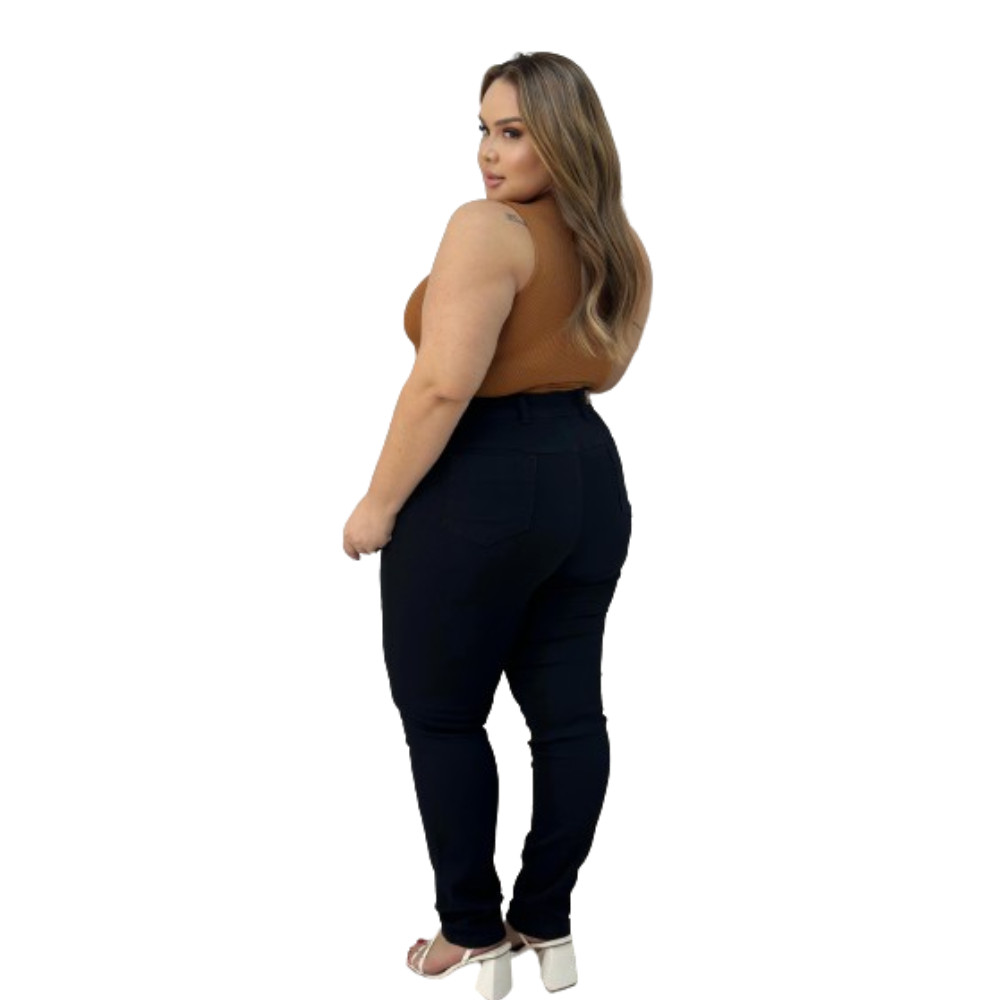 Calça Jeans Feminino Preta Plus Size 48-64 Elastano Modelo Curve