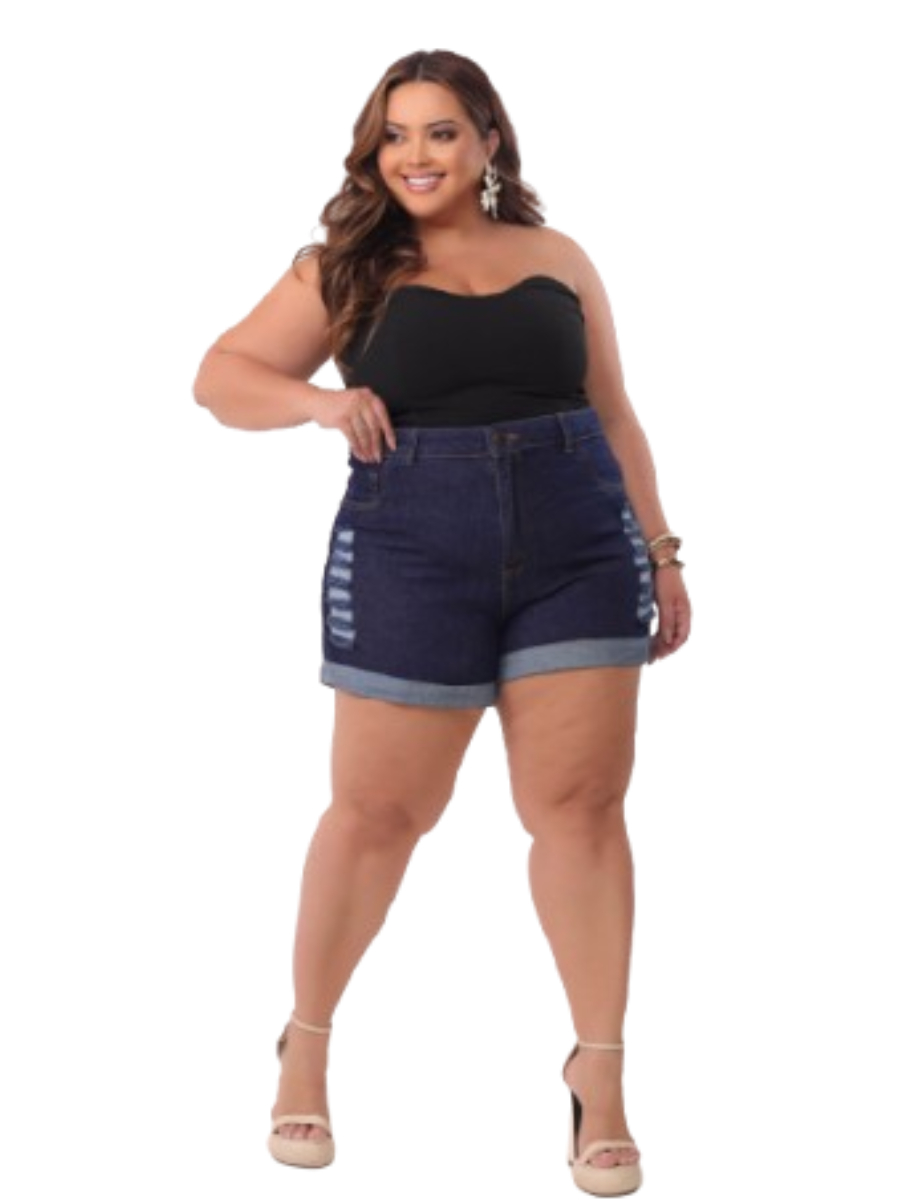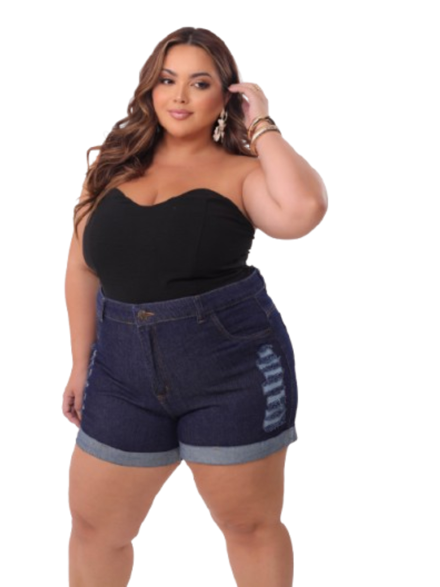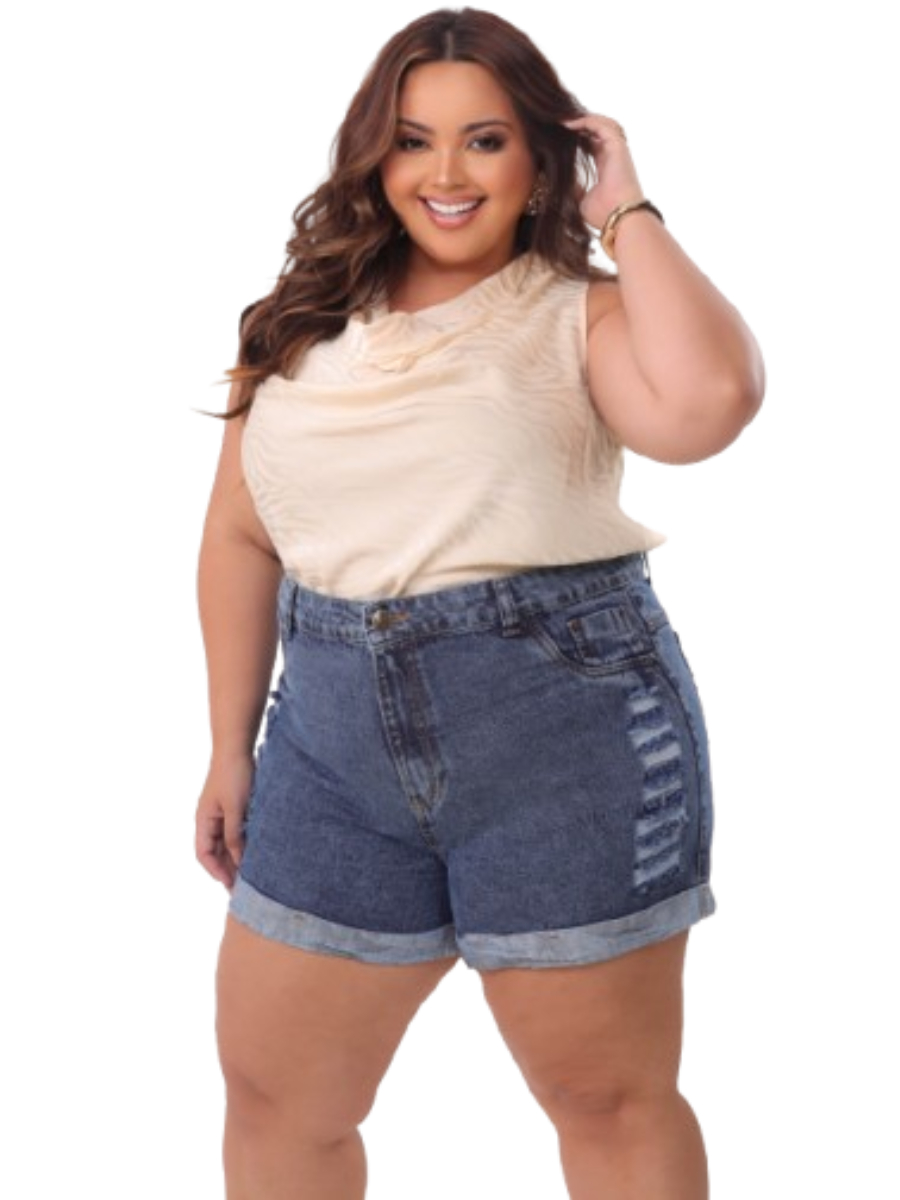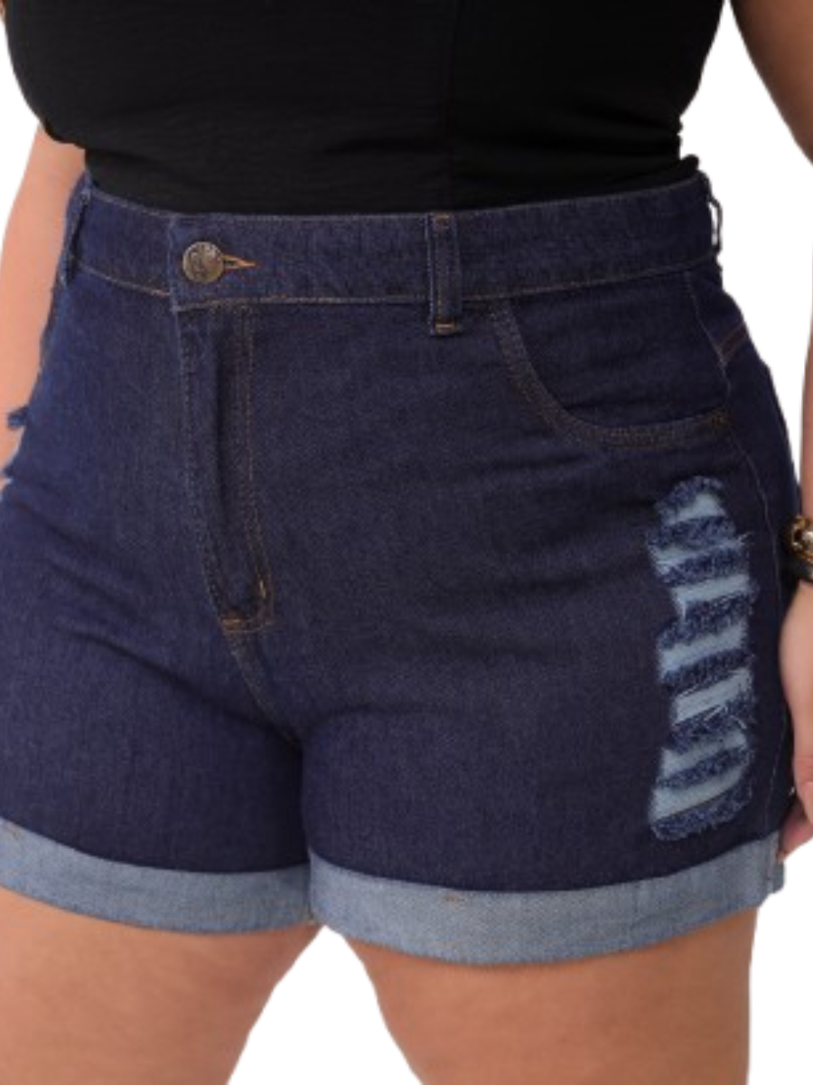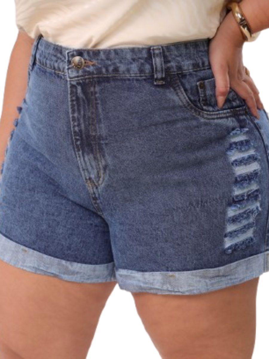 Bermuda Short Jeans Plus Size Feminino Perna Dobrada Destroyed