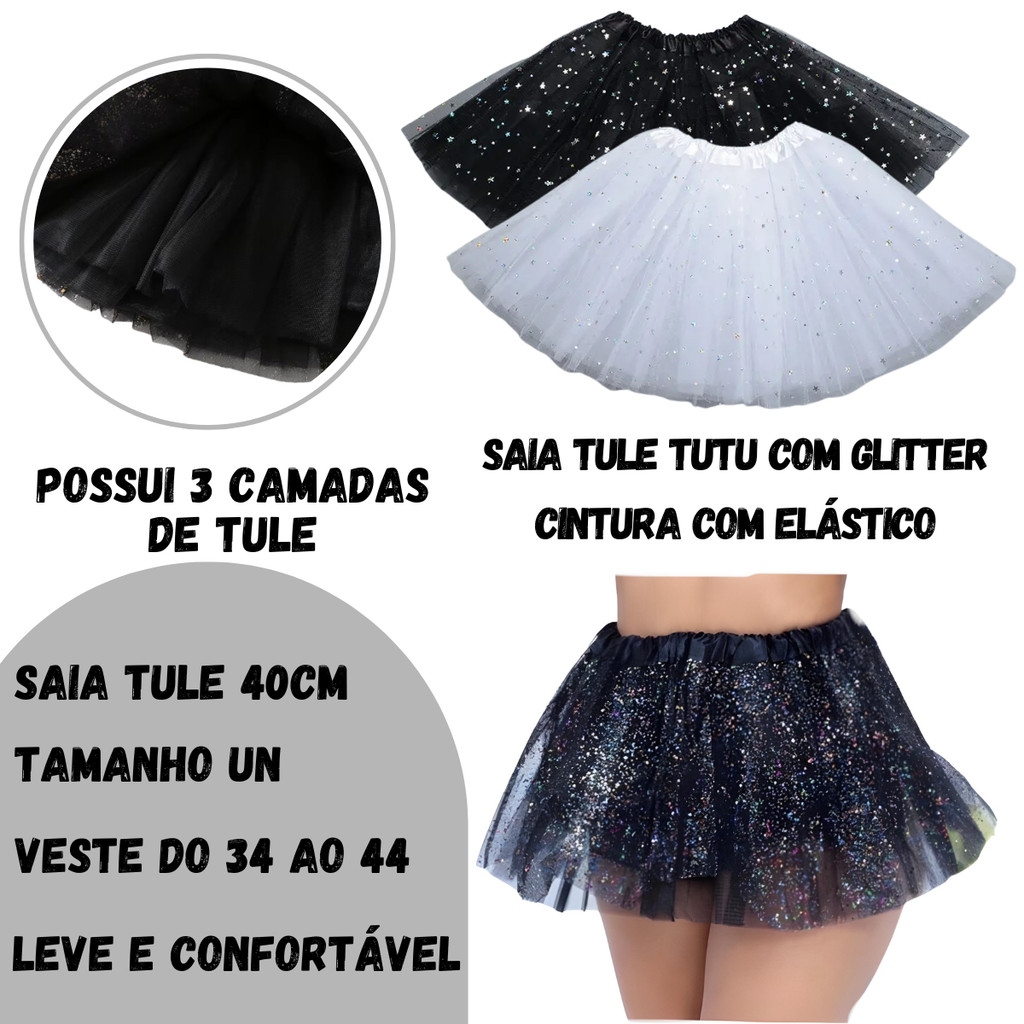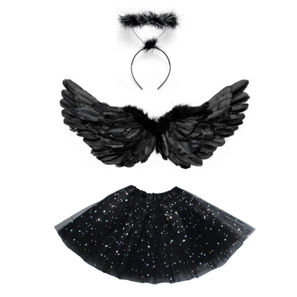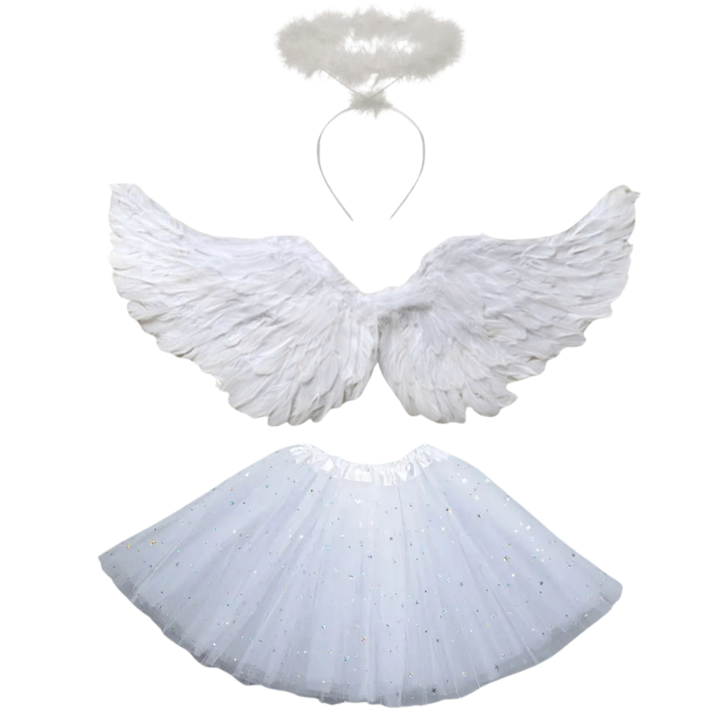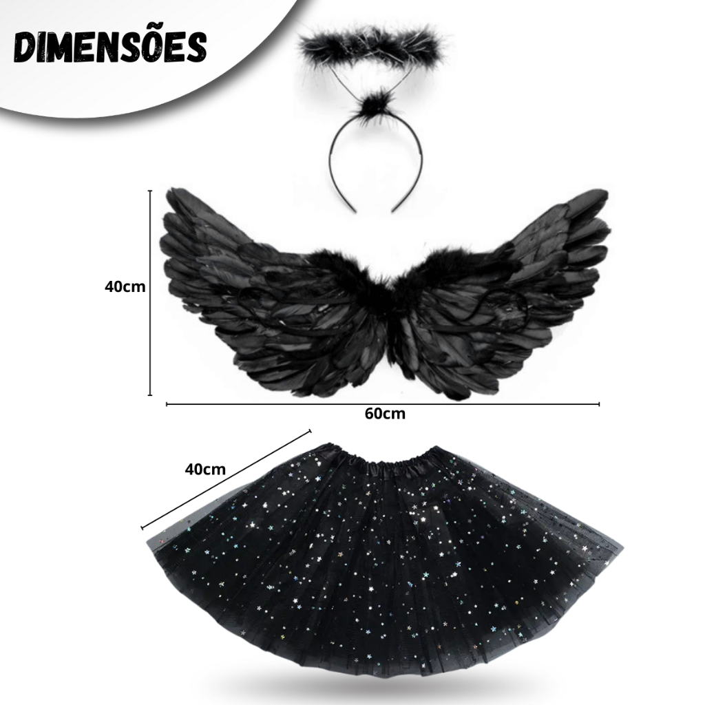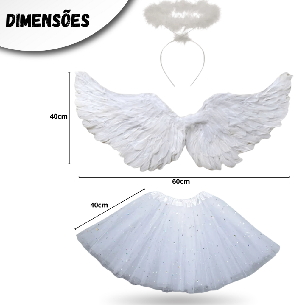 Kit Asa Anjo Tiara + Saia Fantasia Halloween Carnaval Festa