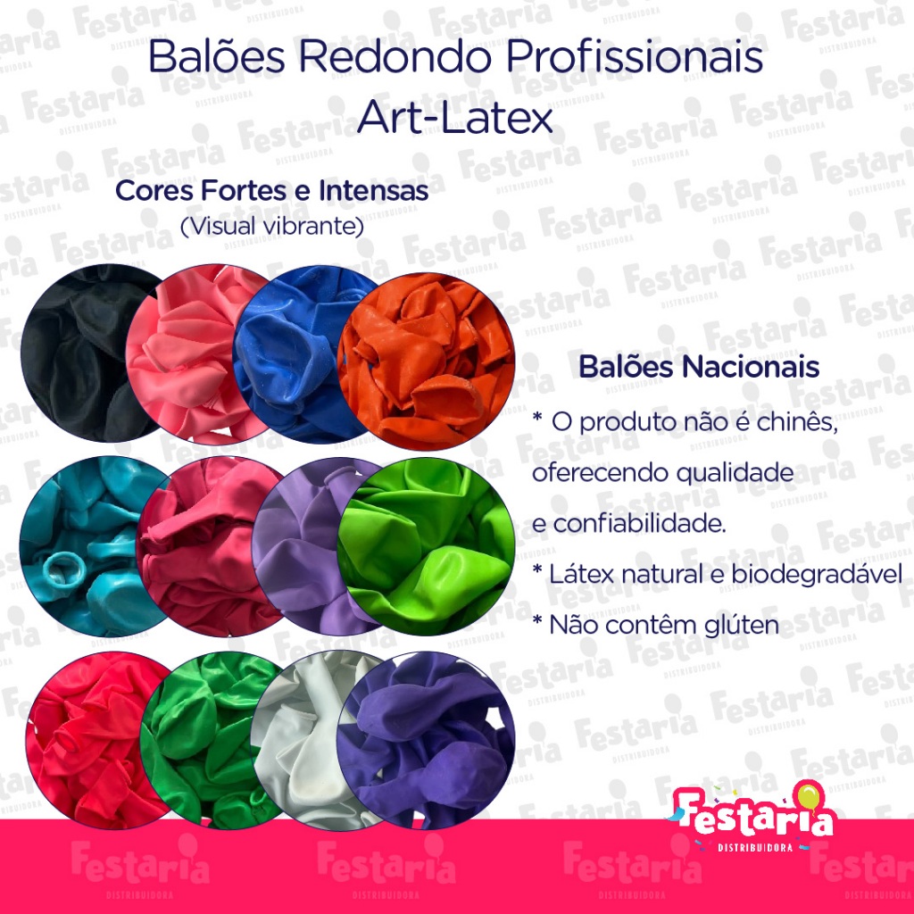 Balão Redondo 7" Diversas Cores – 50 Unidades – Art Latex