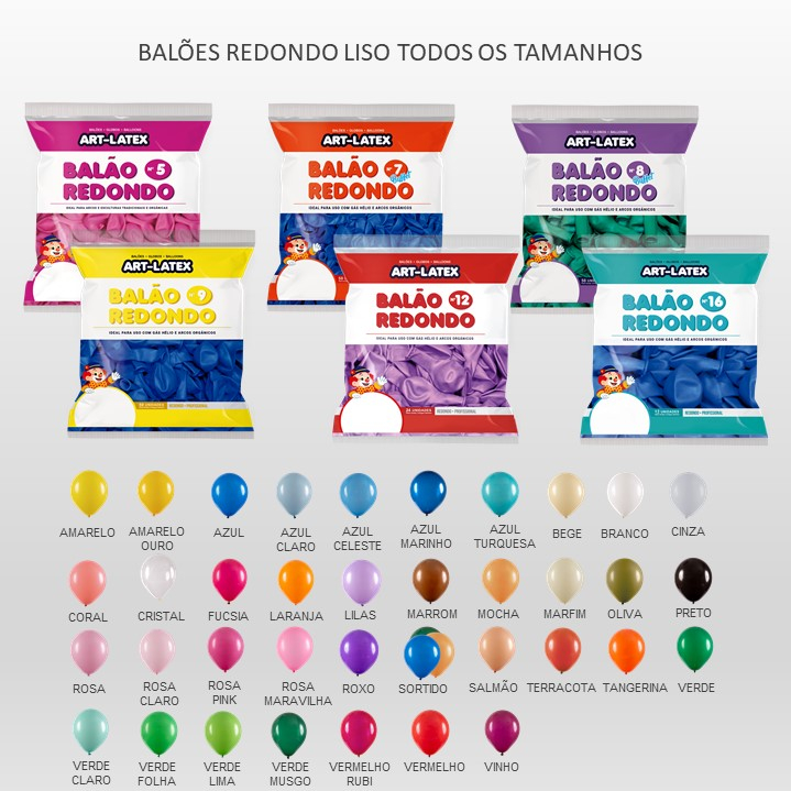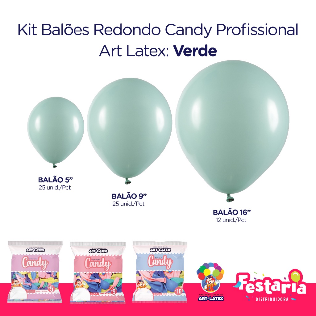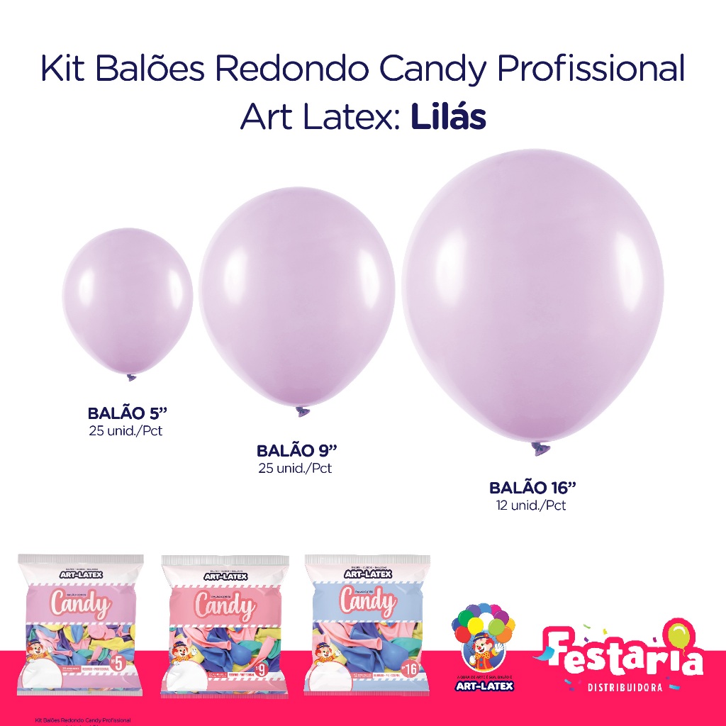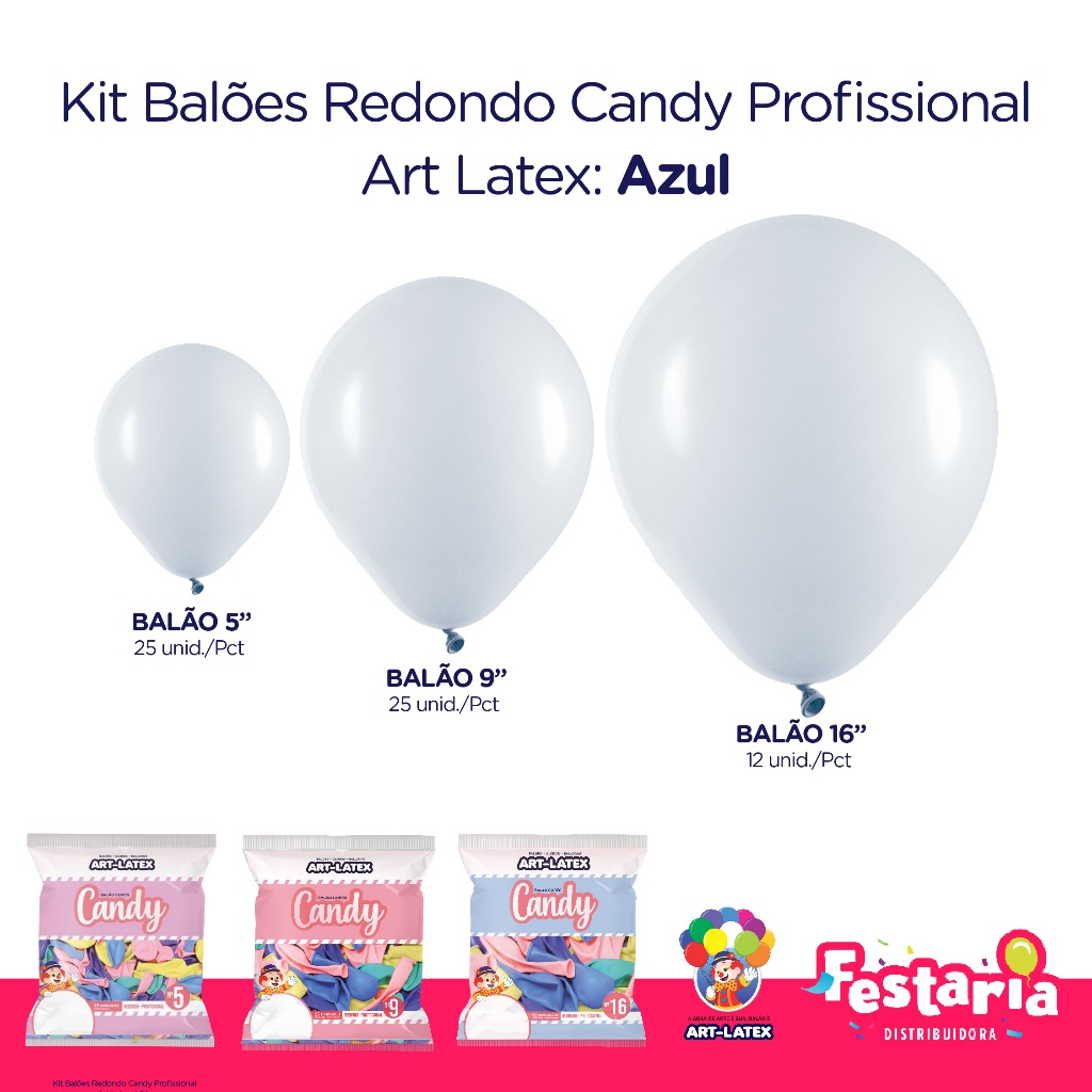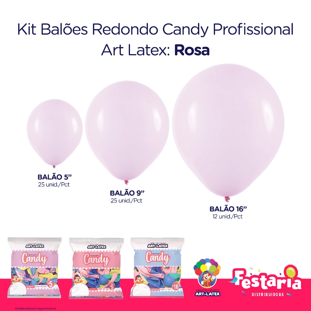 Kit 3 Pacotes Balões Bexigas Redondo Candy Profissional – 5" , 9" e 16" – Art Latex