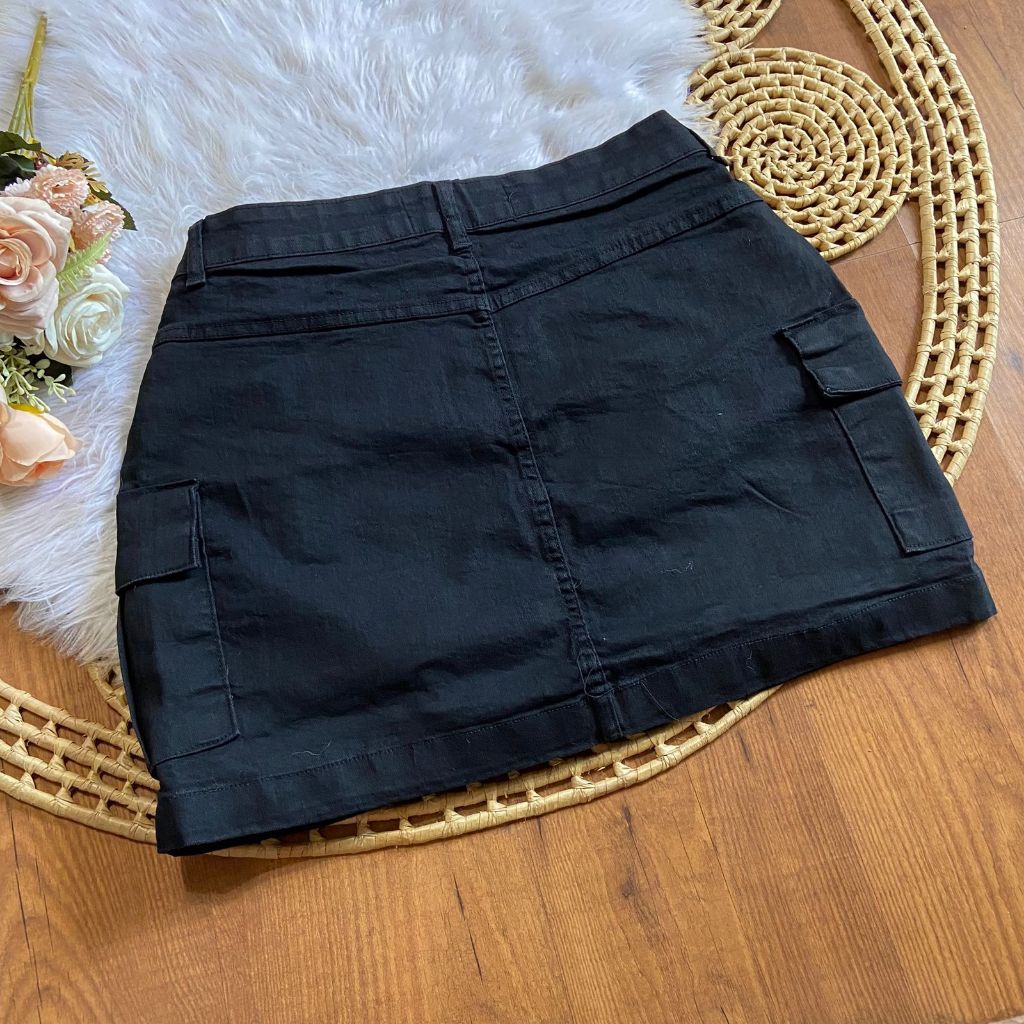 Saia jeans preta feminino plus size 46 a 54 com lycra