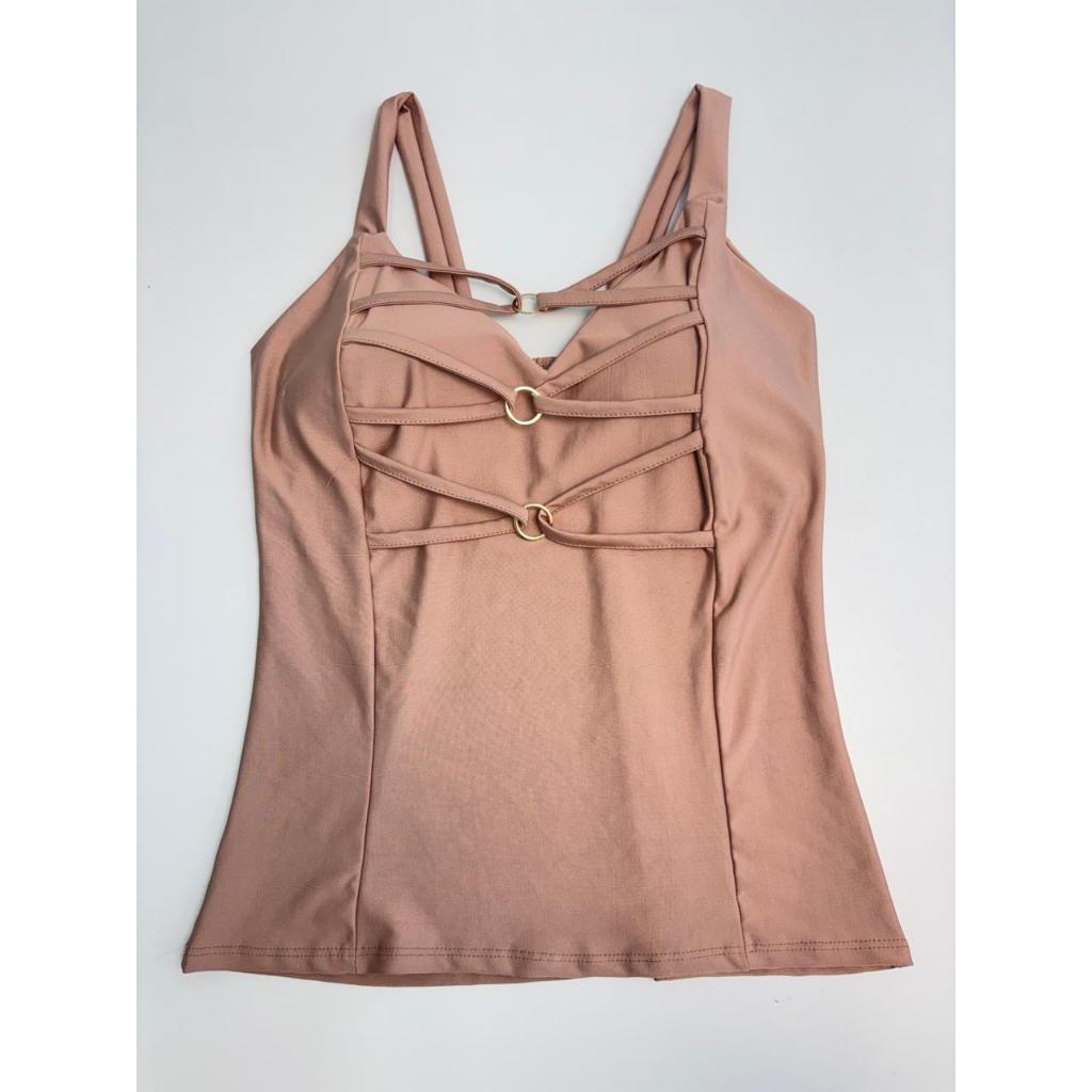 Regata Feminina Com Bojo E Detalhe em Tiras GG