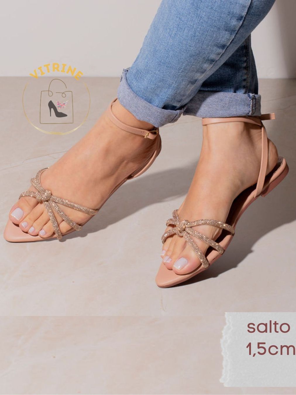 Sandalia Feminina Bico Folha Tiras Strass Rasteira Mule