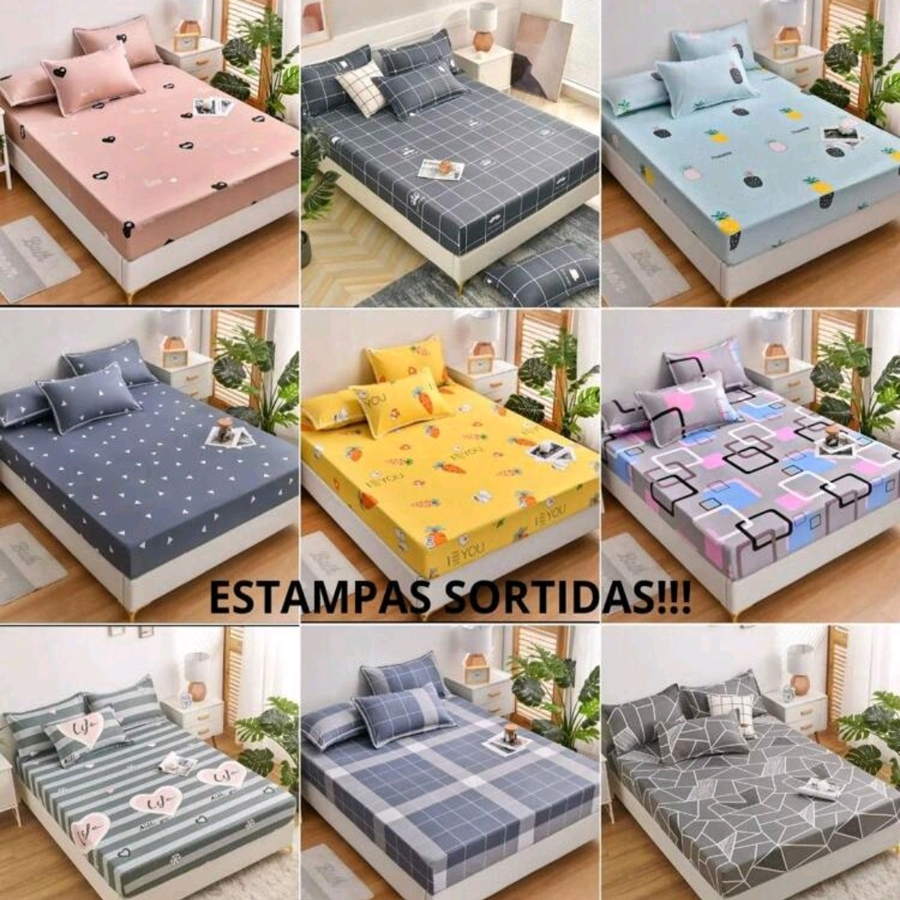 LENÇOL CASAL 3 PEÇAS ESTAMPADO