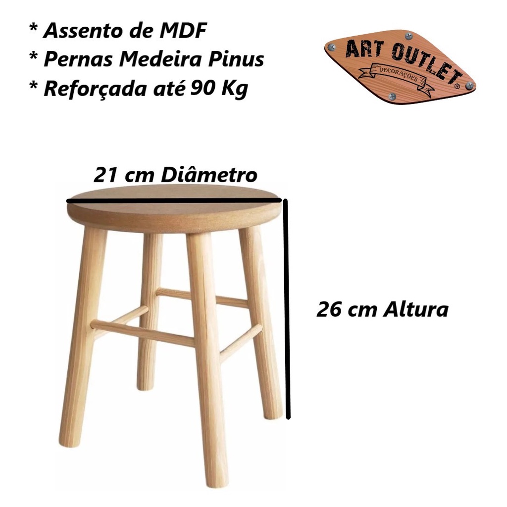 Trio Banquinhos 26 cm, 16 cm e 12 cm Banco Madeira Banqueta Mdf Cru Altura Pernas Reforçadas Pinus