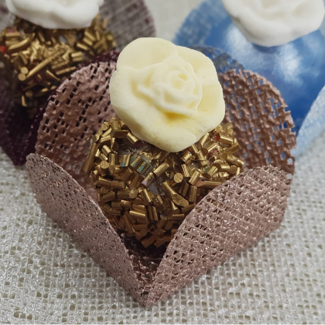 kit 40 forminhas para doces finos TELA ESCÓCIA 4 PÉTALAS casamento aniversário 3,5x3,5 cm