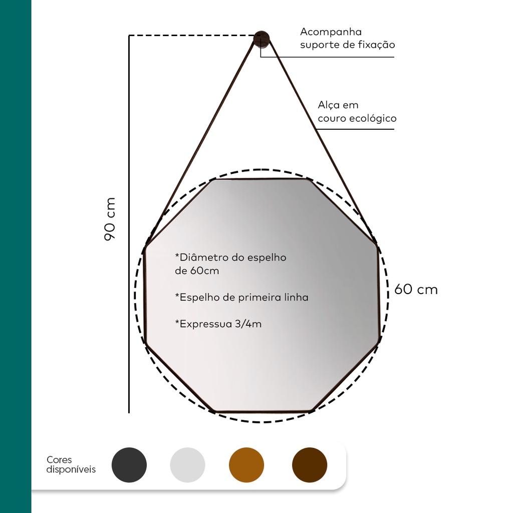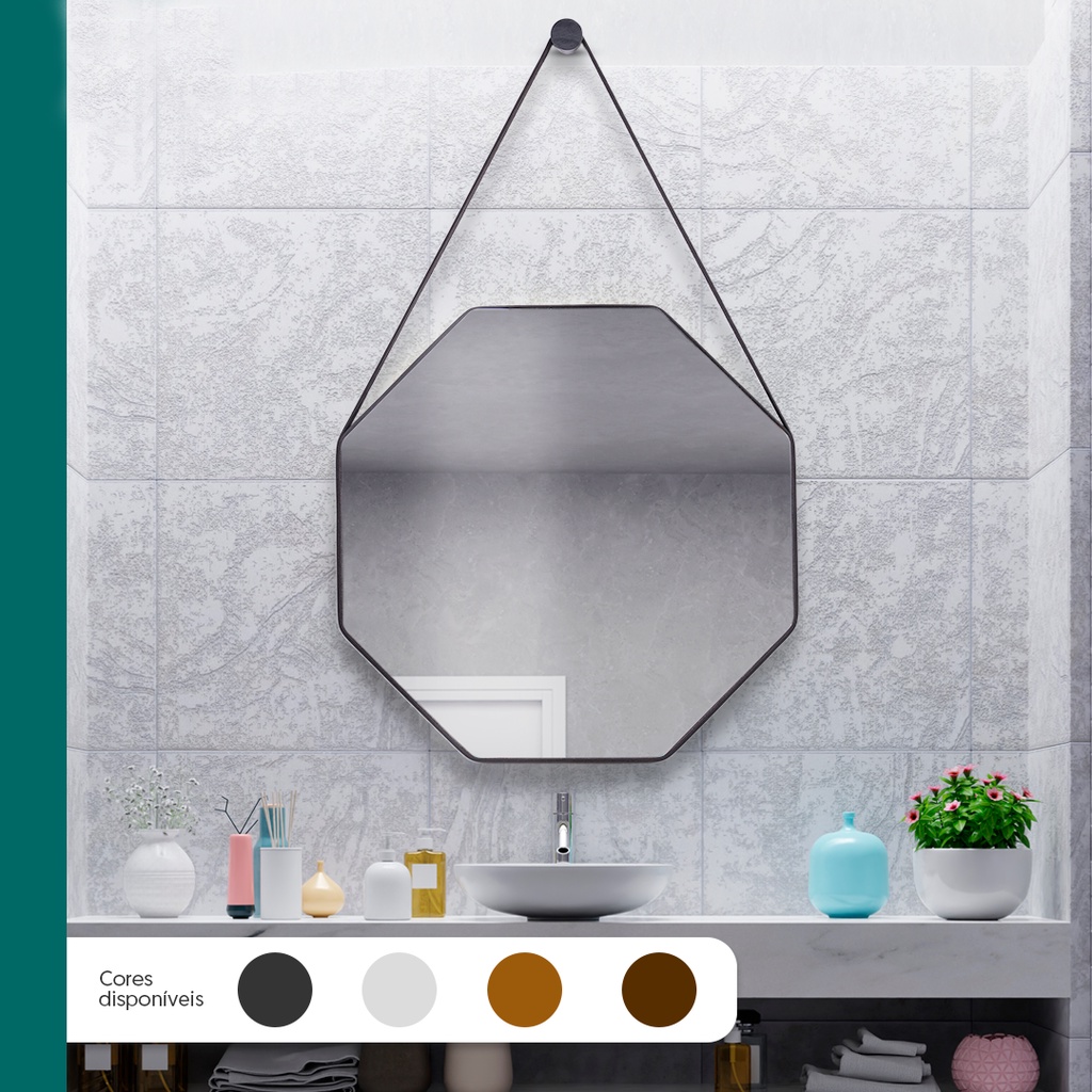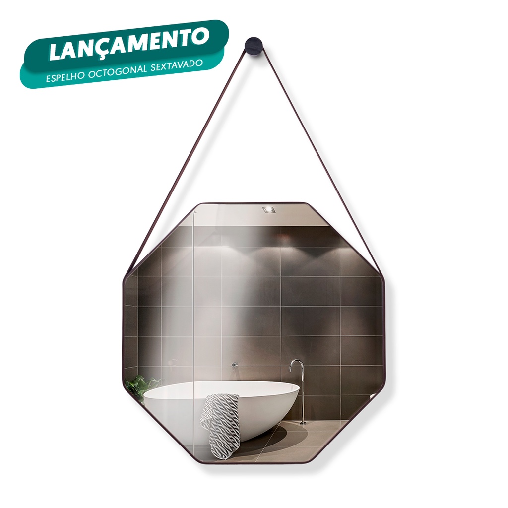Espelho Adnet Redondo Lavabo Sextavado 60cm + Pino Suporte