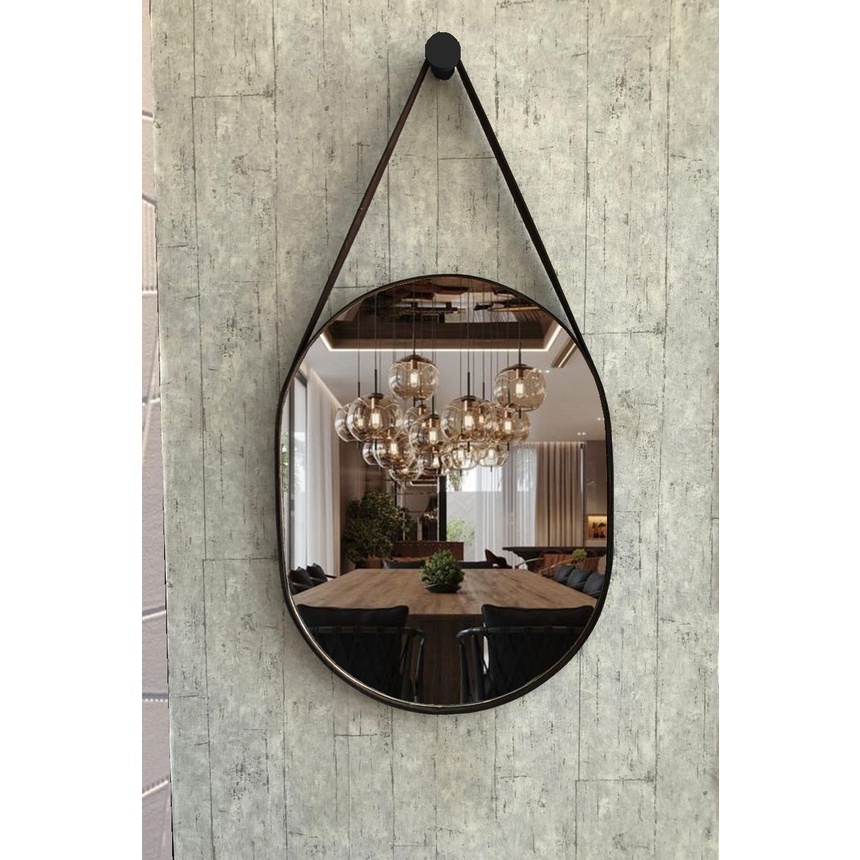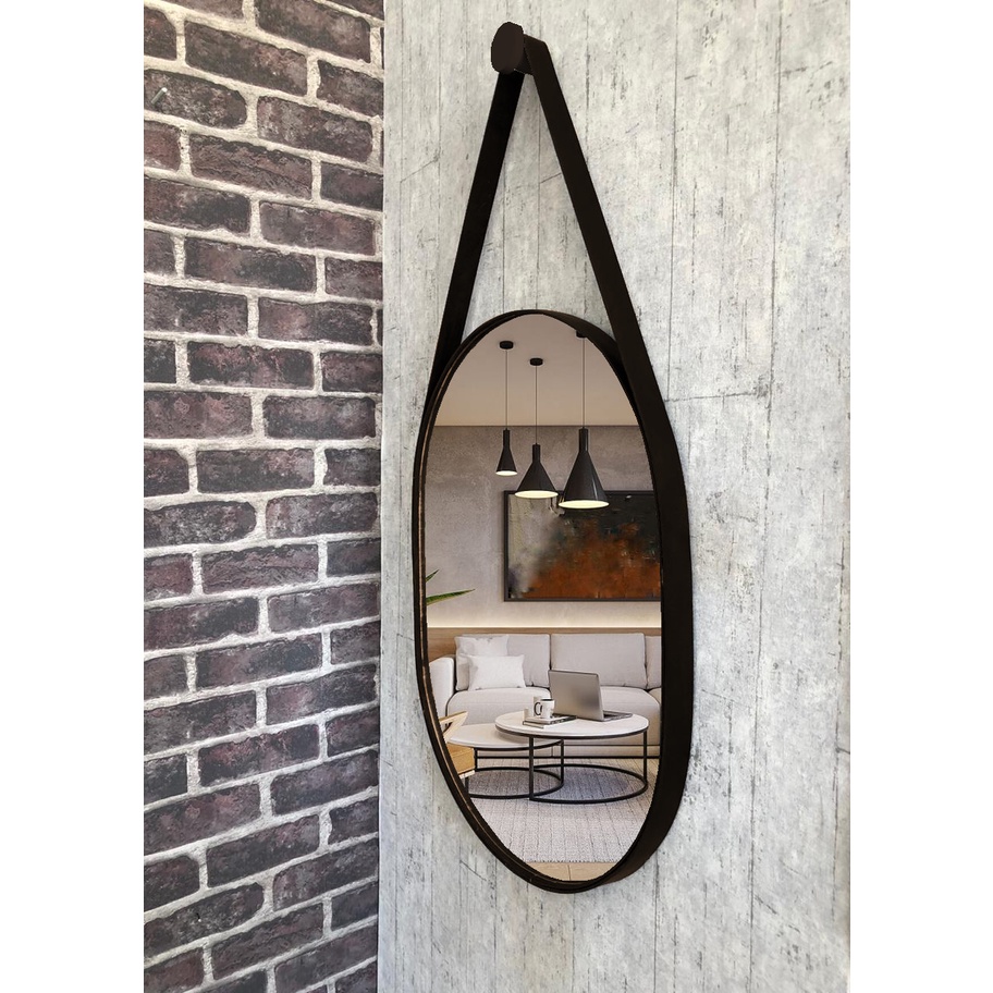 ESPELHO OVAL (60x30cm) COM ALÇA EM COURO SALA/QUARTO