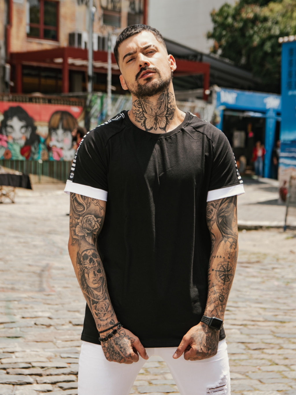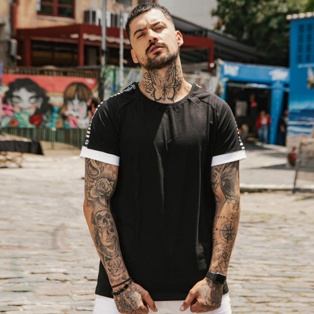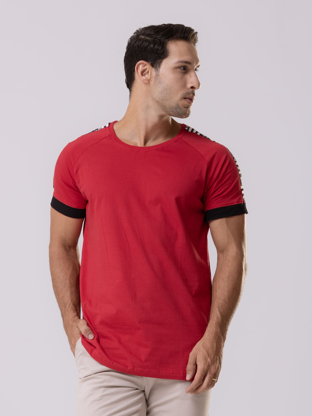 Camiseta Masculina Manga em Contraste Raglan Fit Branca Natal Ano novo Masculino Coisas Masculinas
