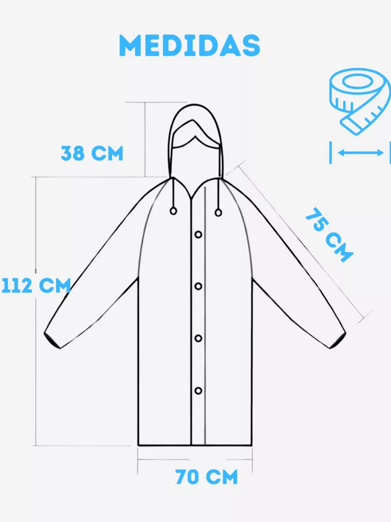 Capa de Chuva PVC adulto Unissex Transparente Reforçada Reutilizável