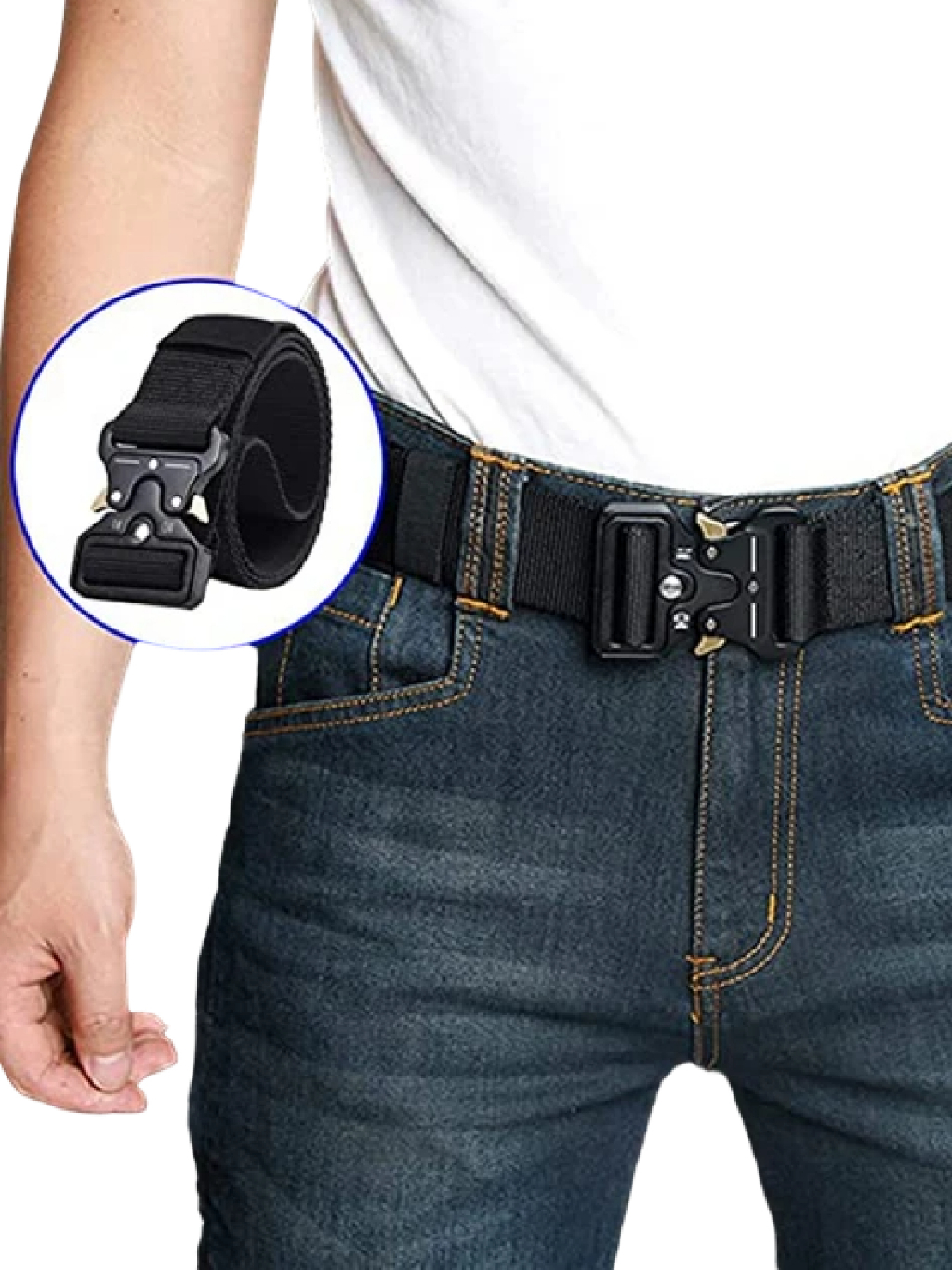 Cinto Com Fivela de Engate Rápido Masculino Tecido Sintético Preto