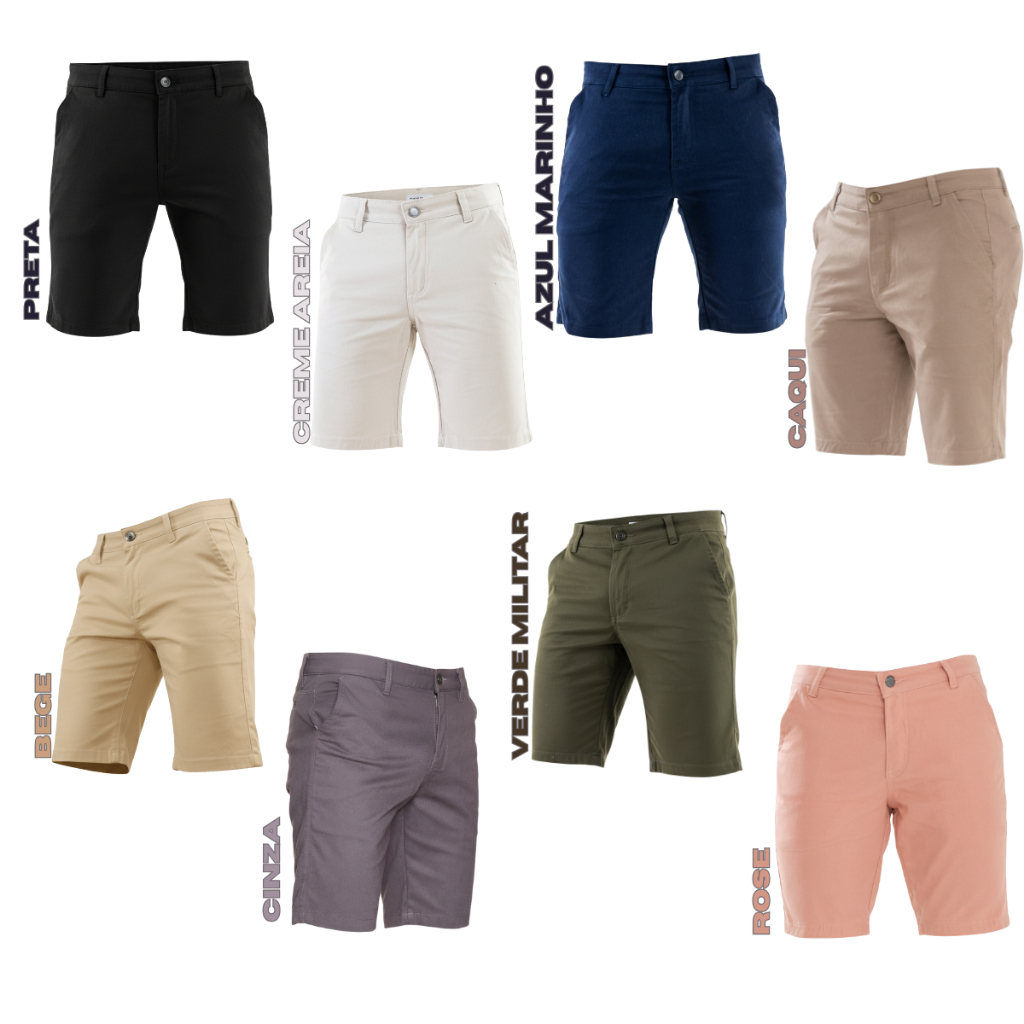 Kit 3 Bermuda Sarja Masculina Modelo Social Esporte Fino com Elastano