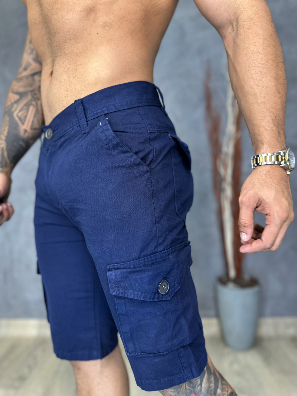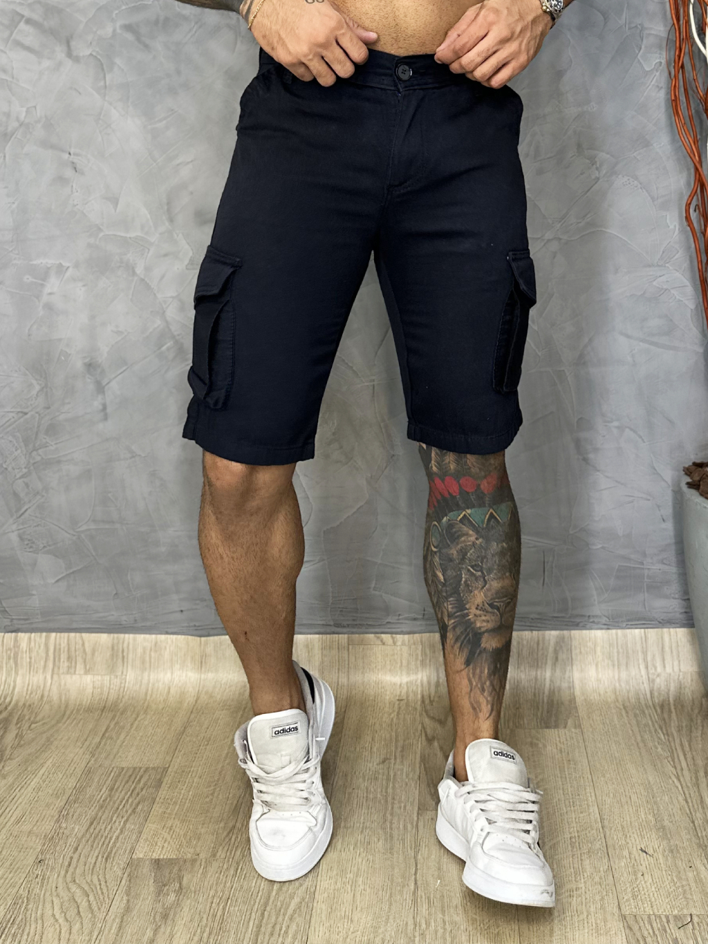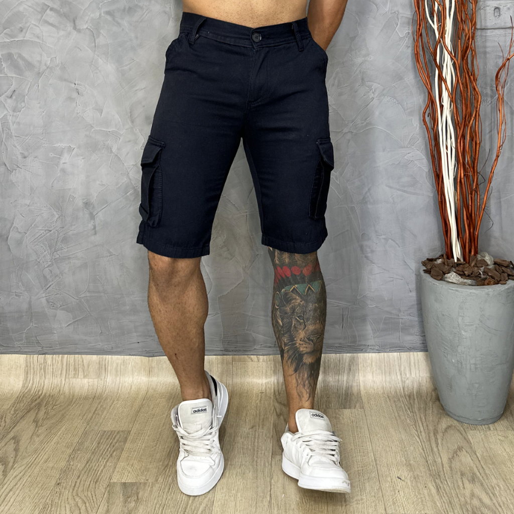 Bermuda Sarja Masculina Cargo Brim Bermuda com Varios Bolsos