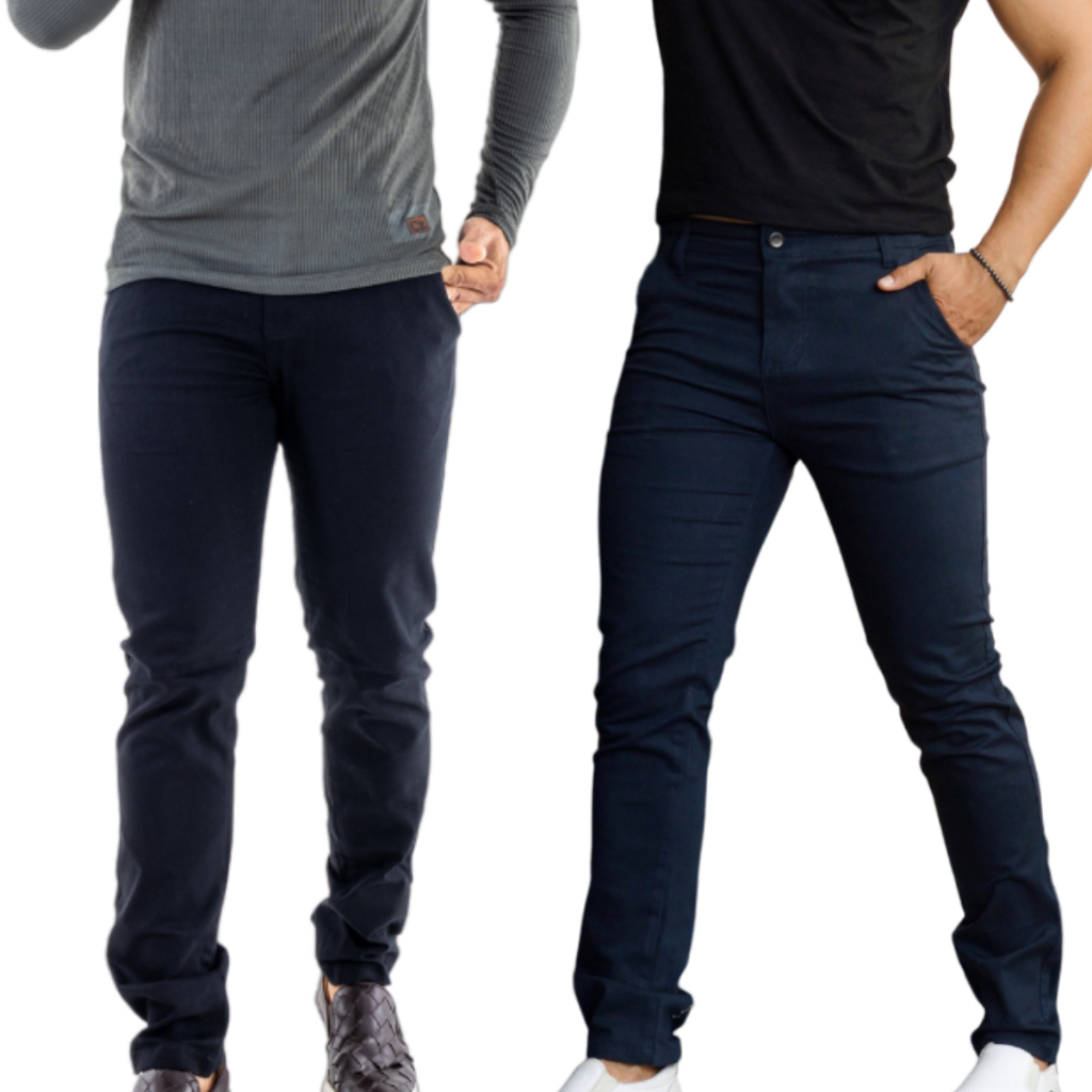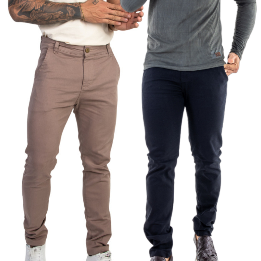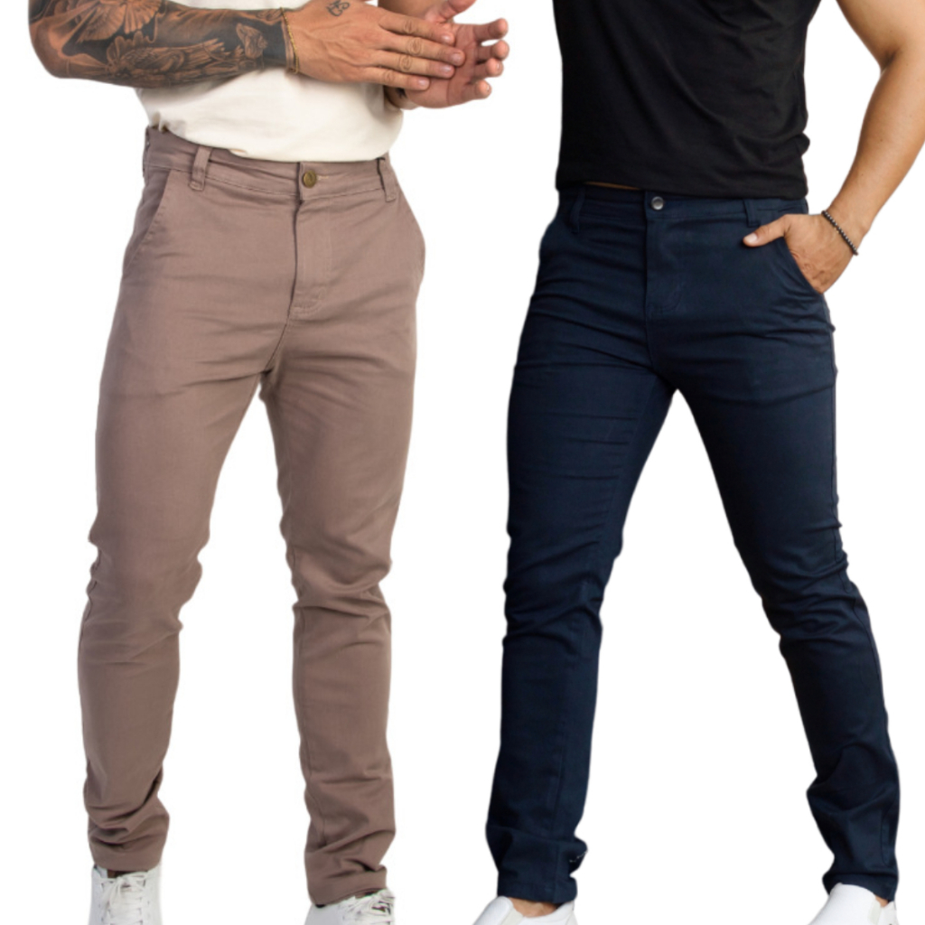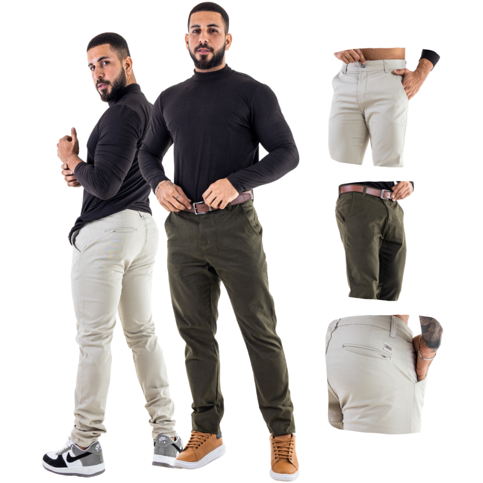Kit 2 Calças Masculinas Alfaiataria com Bolso Embutido Slim Esporte Fino