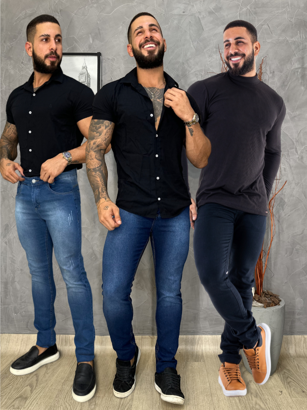 Kit 3 Calças Jeans Masculina Tradicional Slim com Elastano