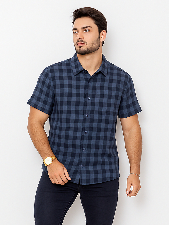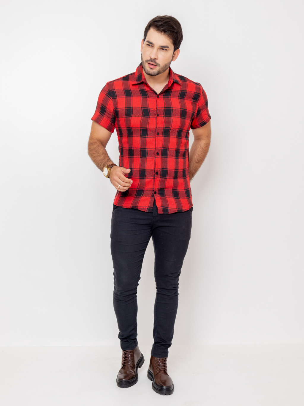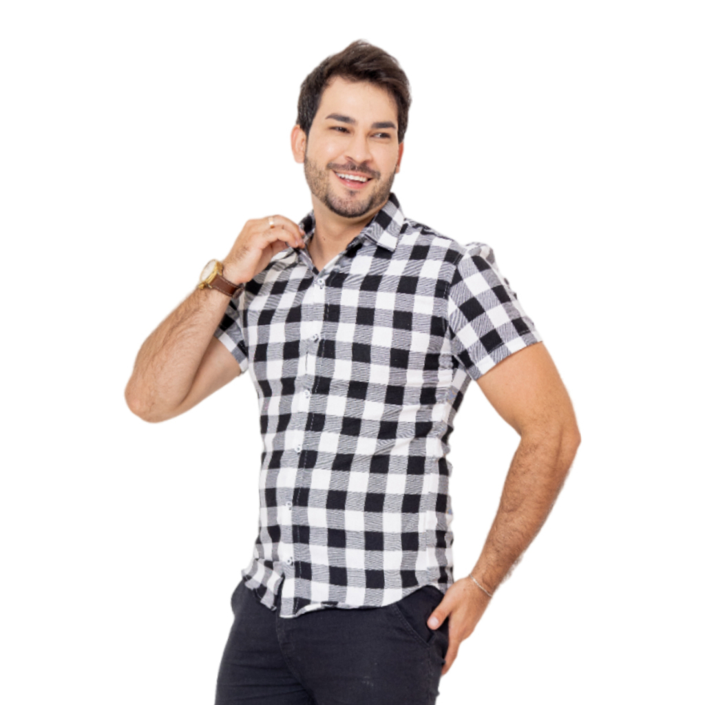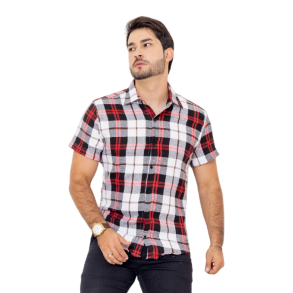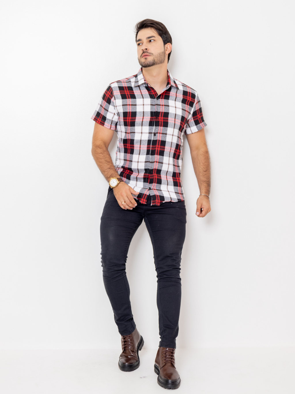 Camisa Masculina Xadrez Slim Fit Manga Curta Varias Cores