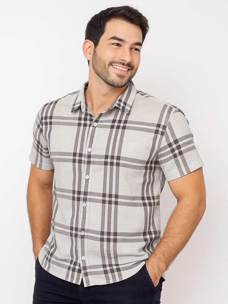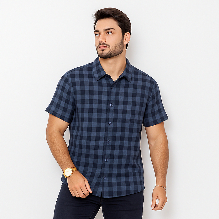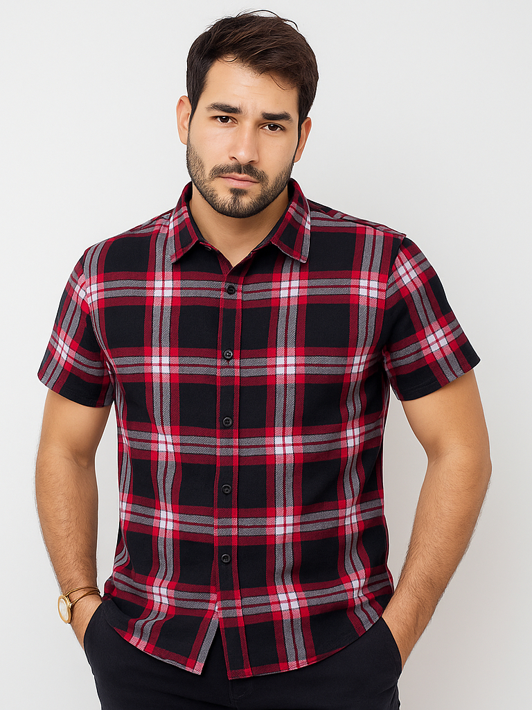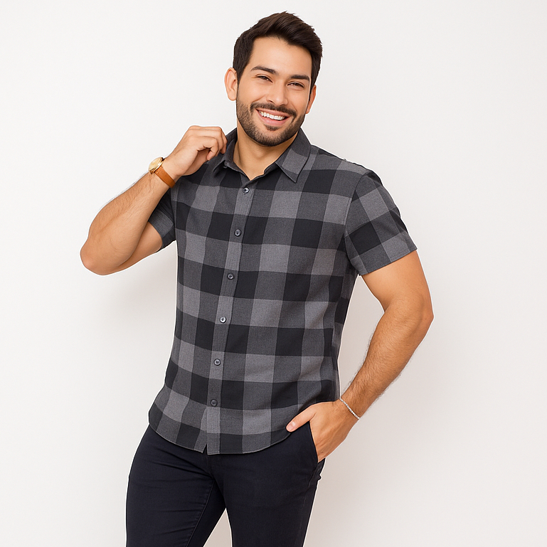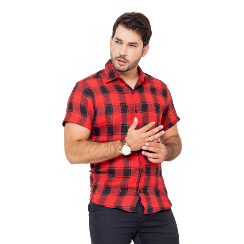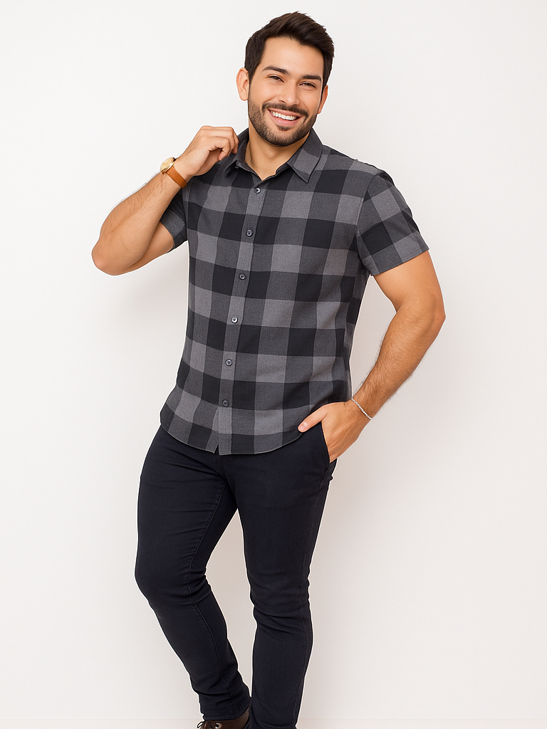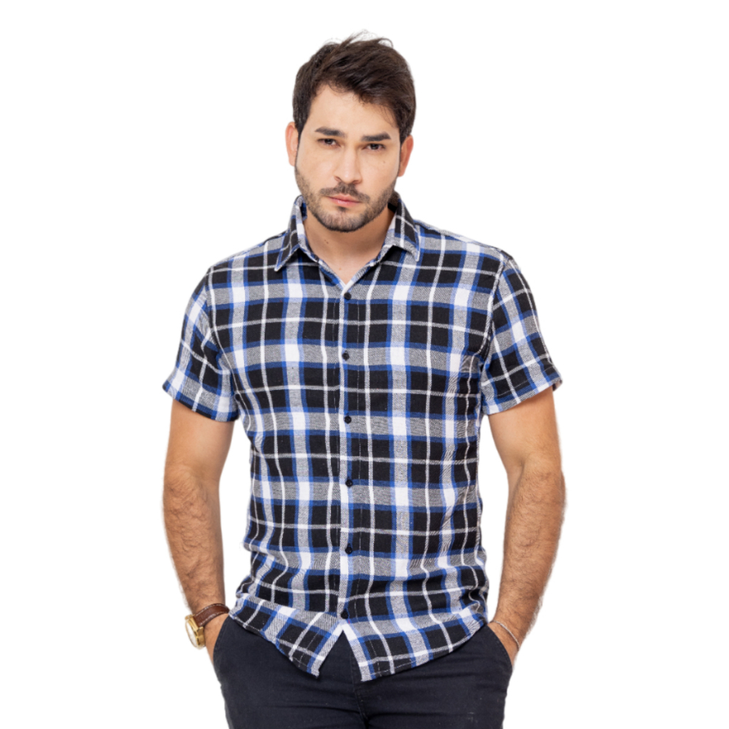 Camisa Masculina Xadrez Slim Fit Manga Curta Varias Cores