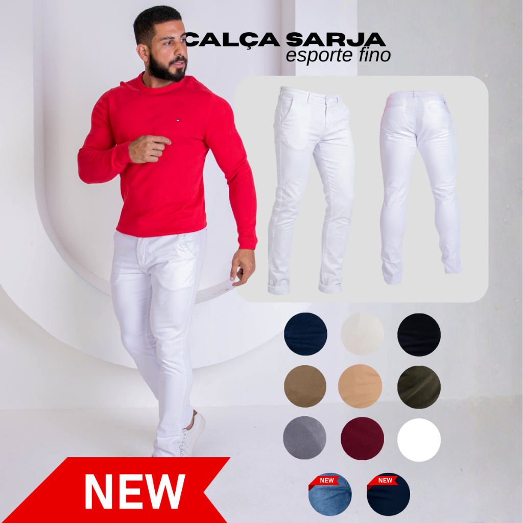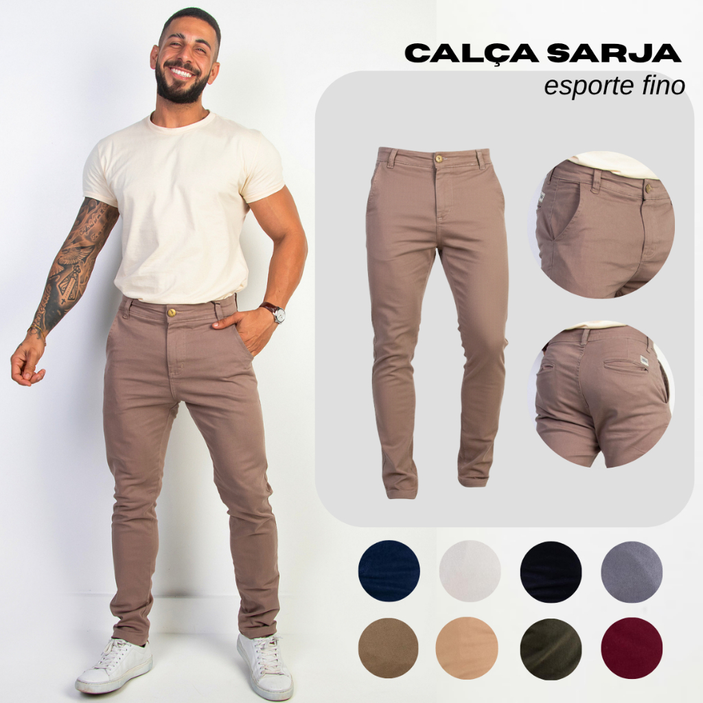 Calça Alfaiataria Masculina Sarja com Elastano Slim Fit