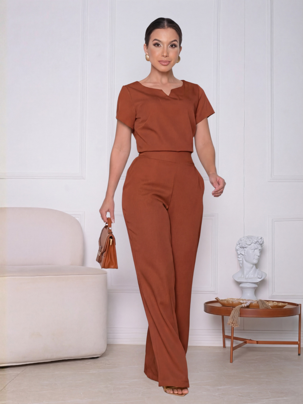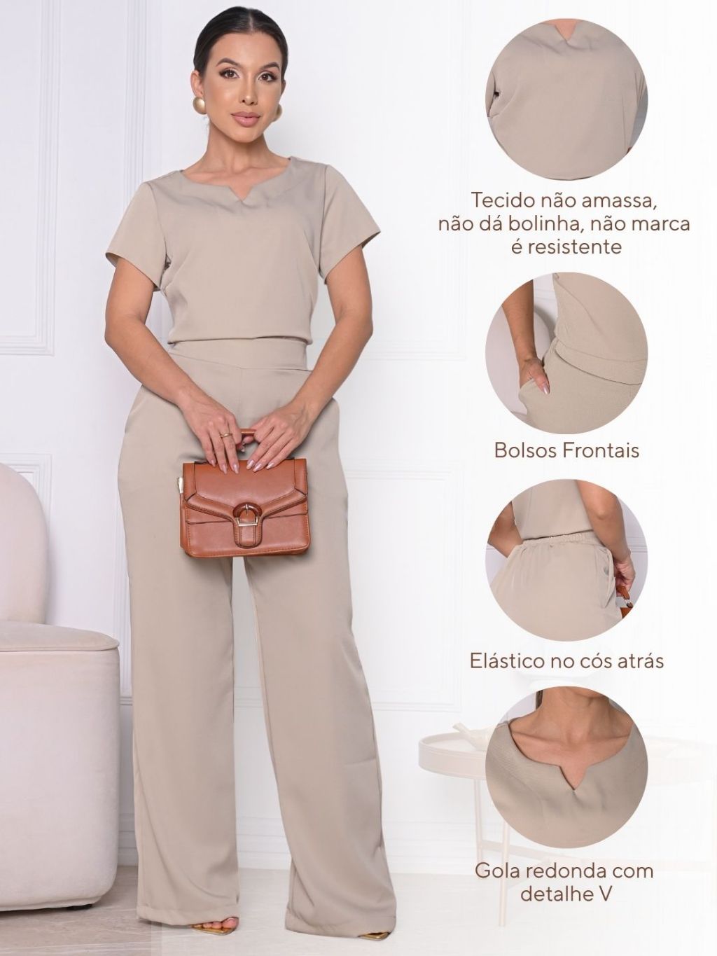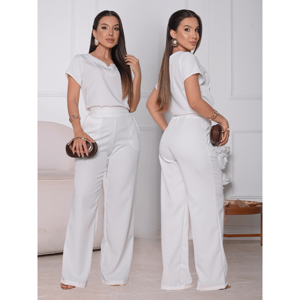 Conjunto feminino Alfaiataria Calça mais Blusa Manga Premium