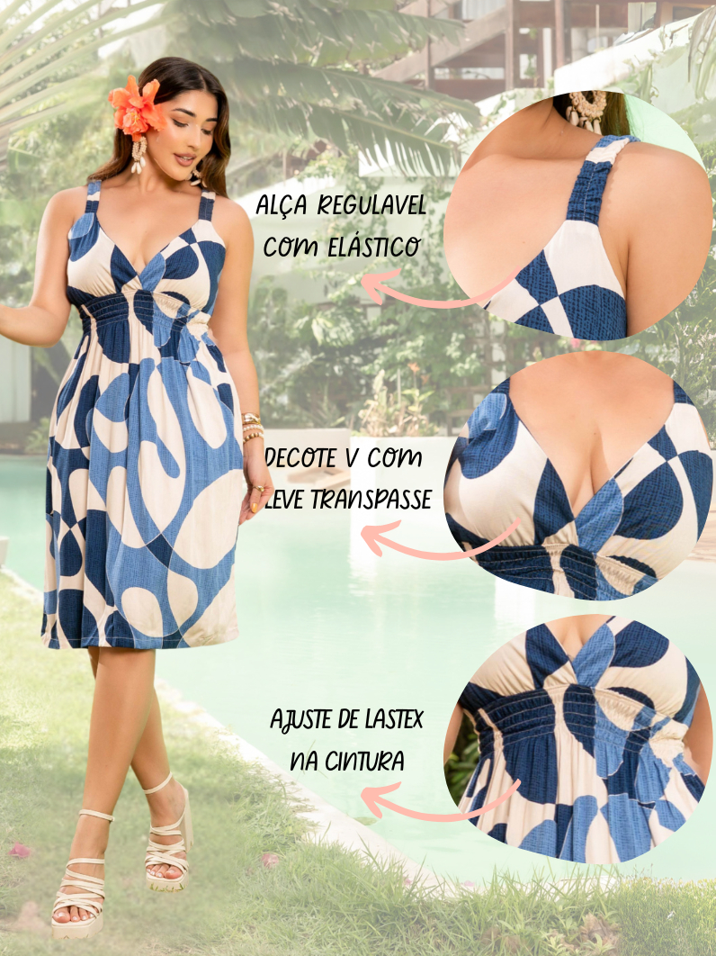 Vestido Feminino em Viscolinho Curto de Alça Estampado Verão