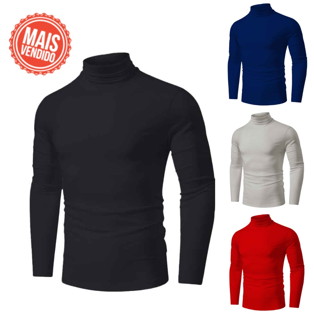 Camisa Blusa Masculina Manga Longa Camiseta Segunda Pele Proteção Solar Fator 50 UV Gola Alta