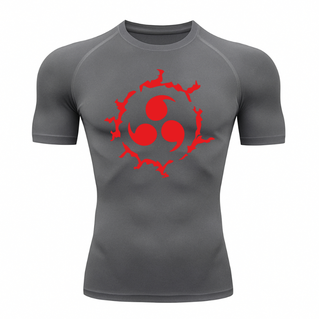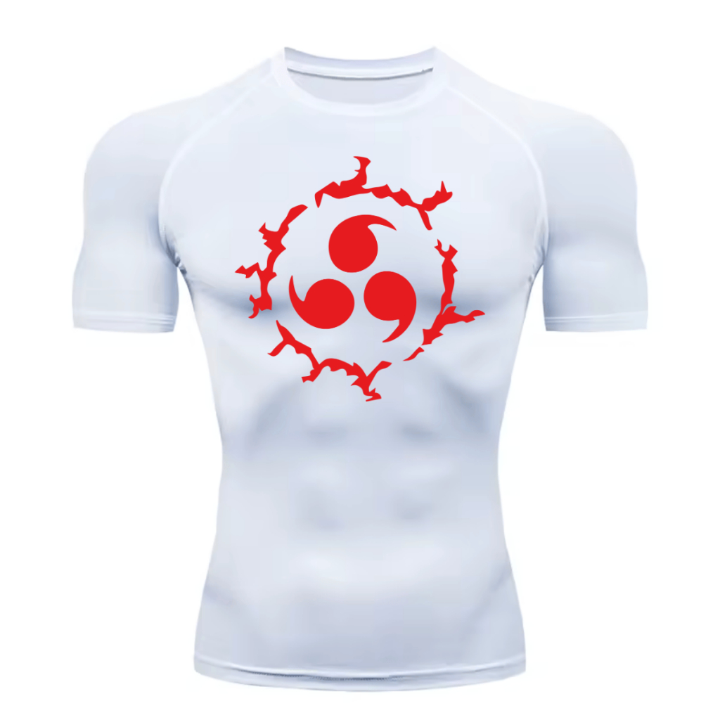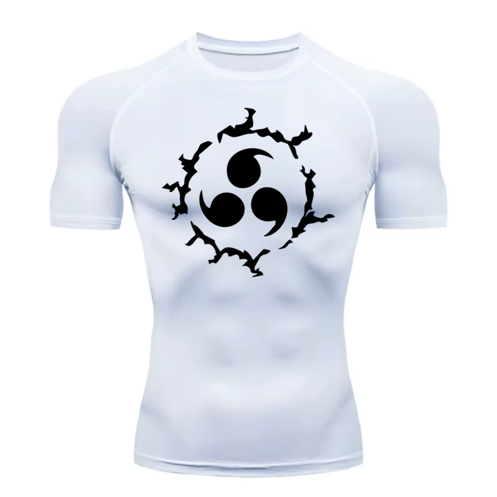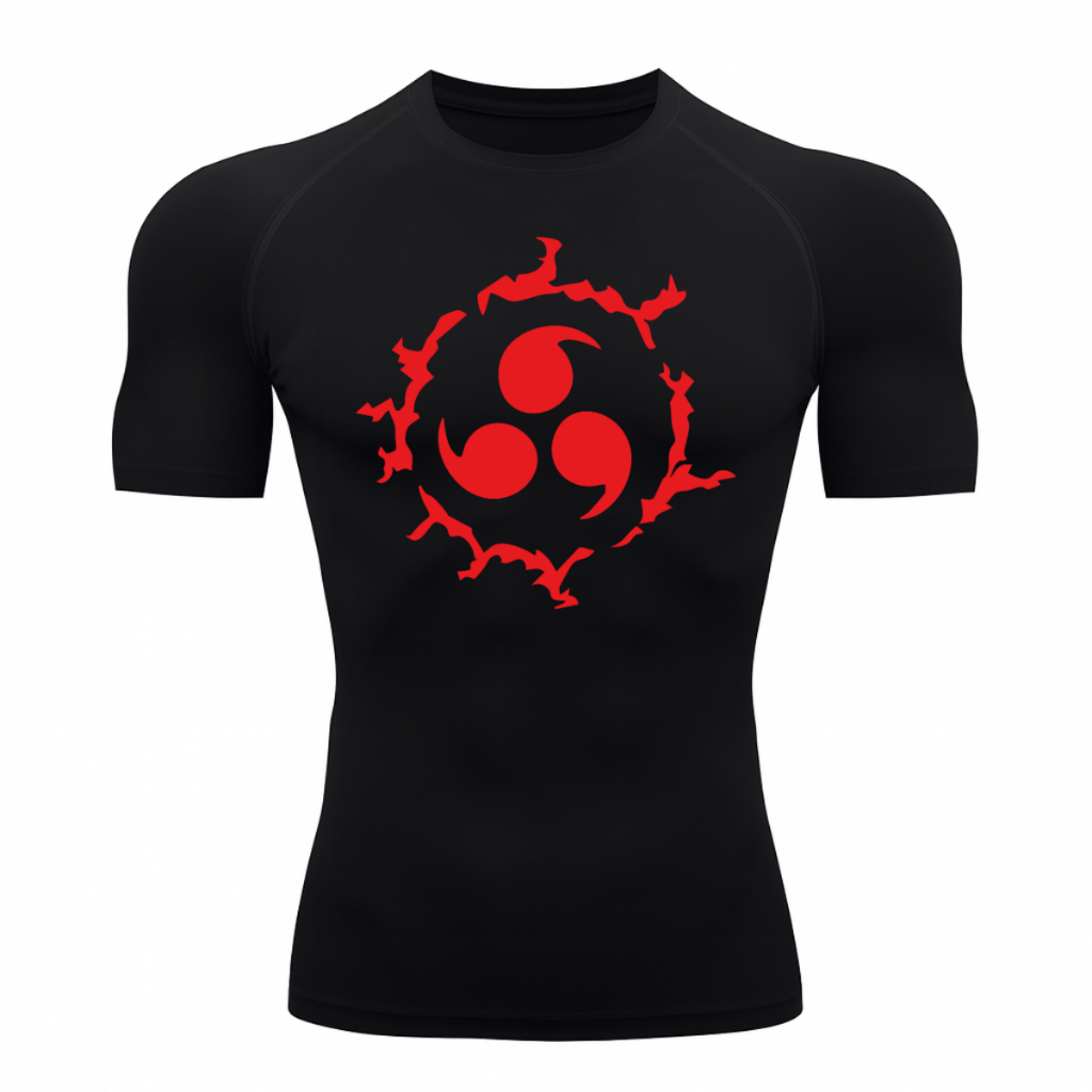 Camiseta Compressão Manga Curta Anime Naruto Símbolo Marca Maldição Sasuke Rash Guard