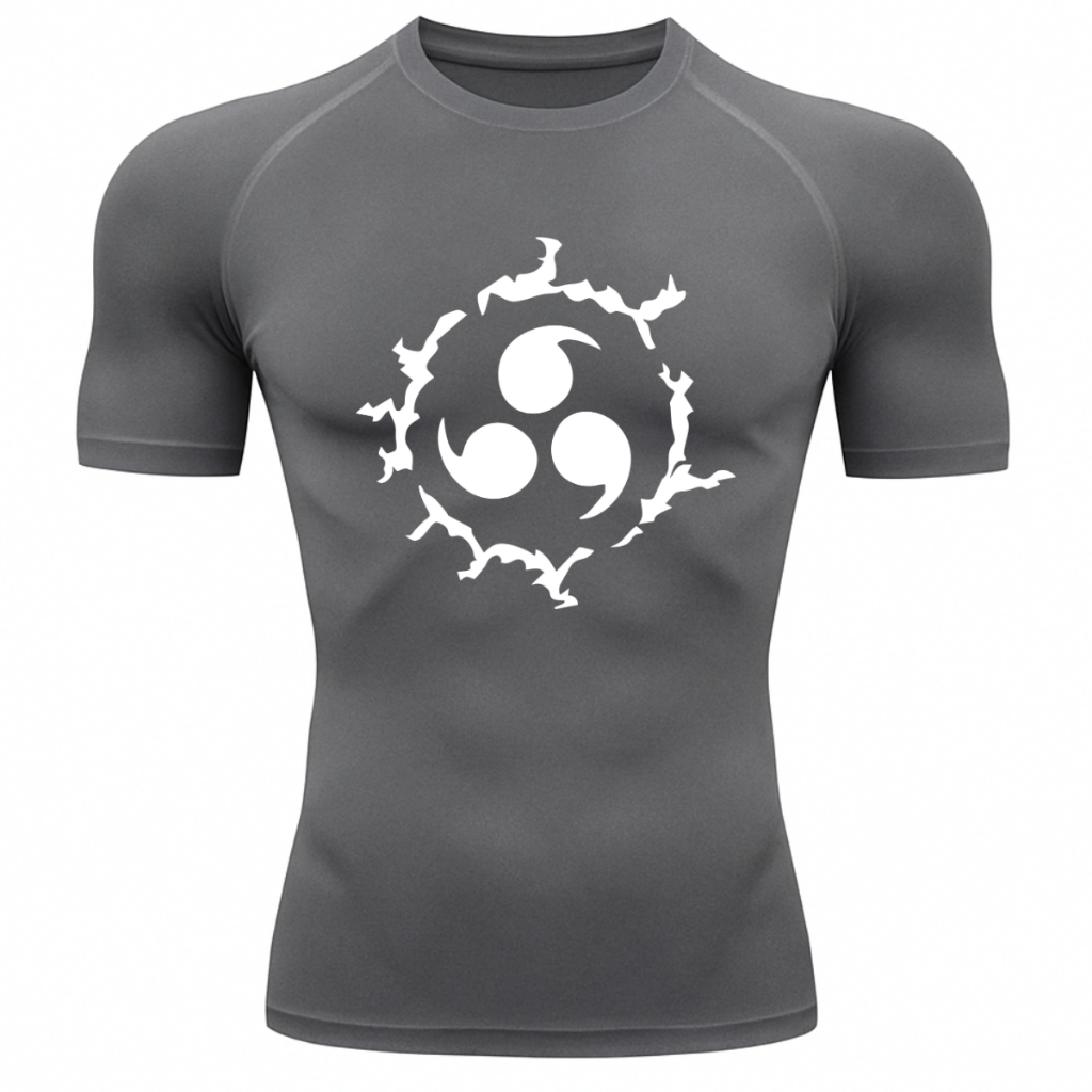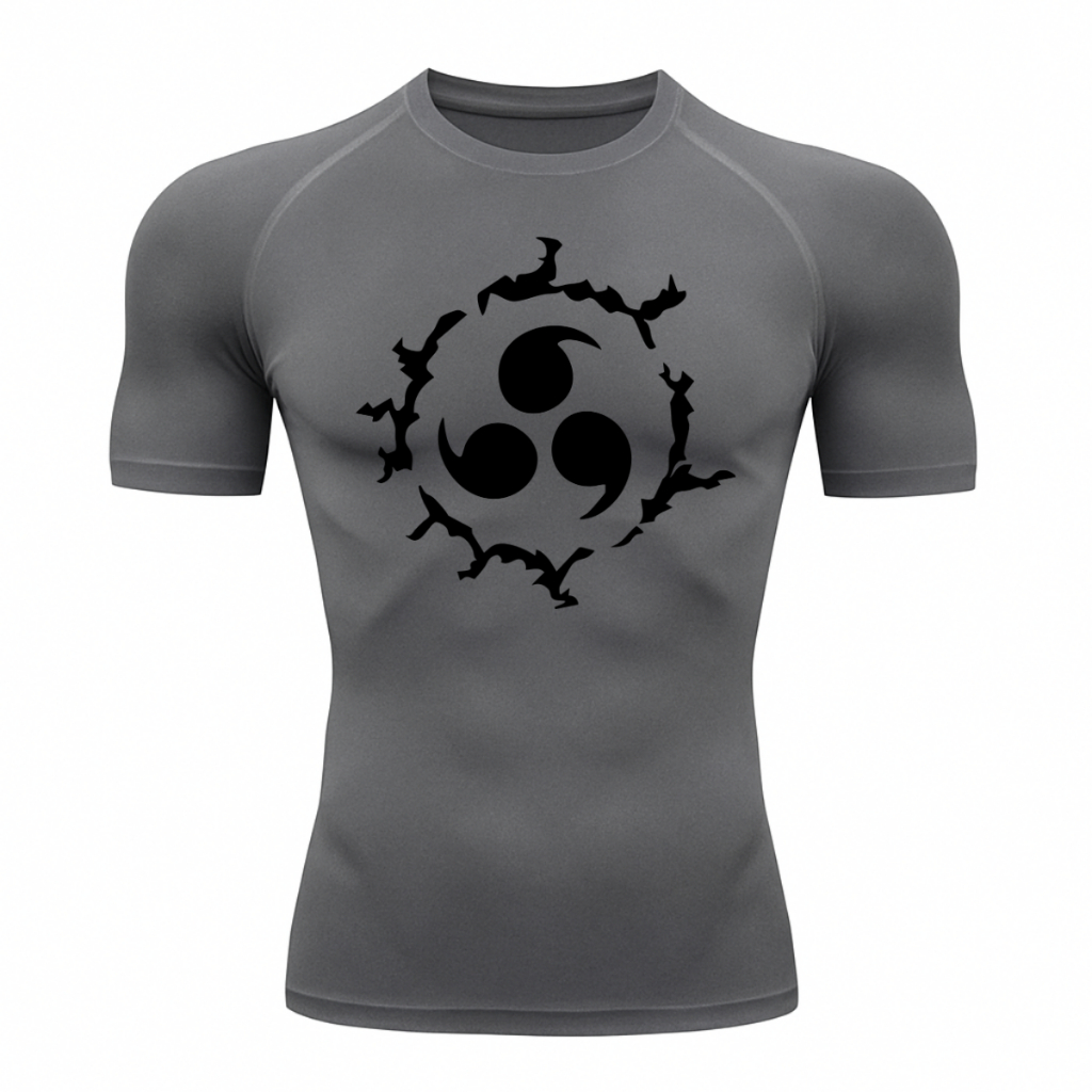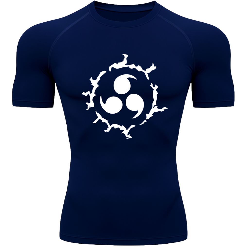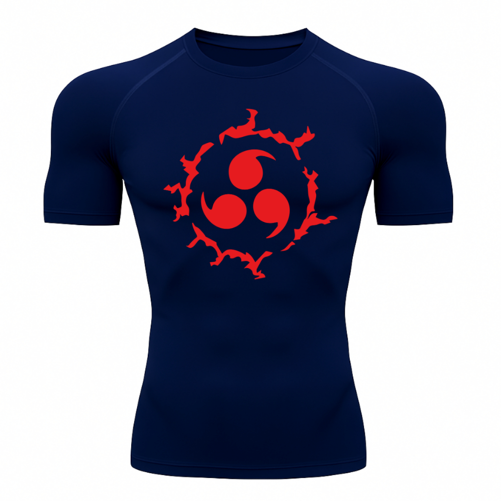 Camiseta Compressão Manga Curta Anime Naruto Símbolo Marca Maldição Sasuke Rash Guard