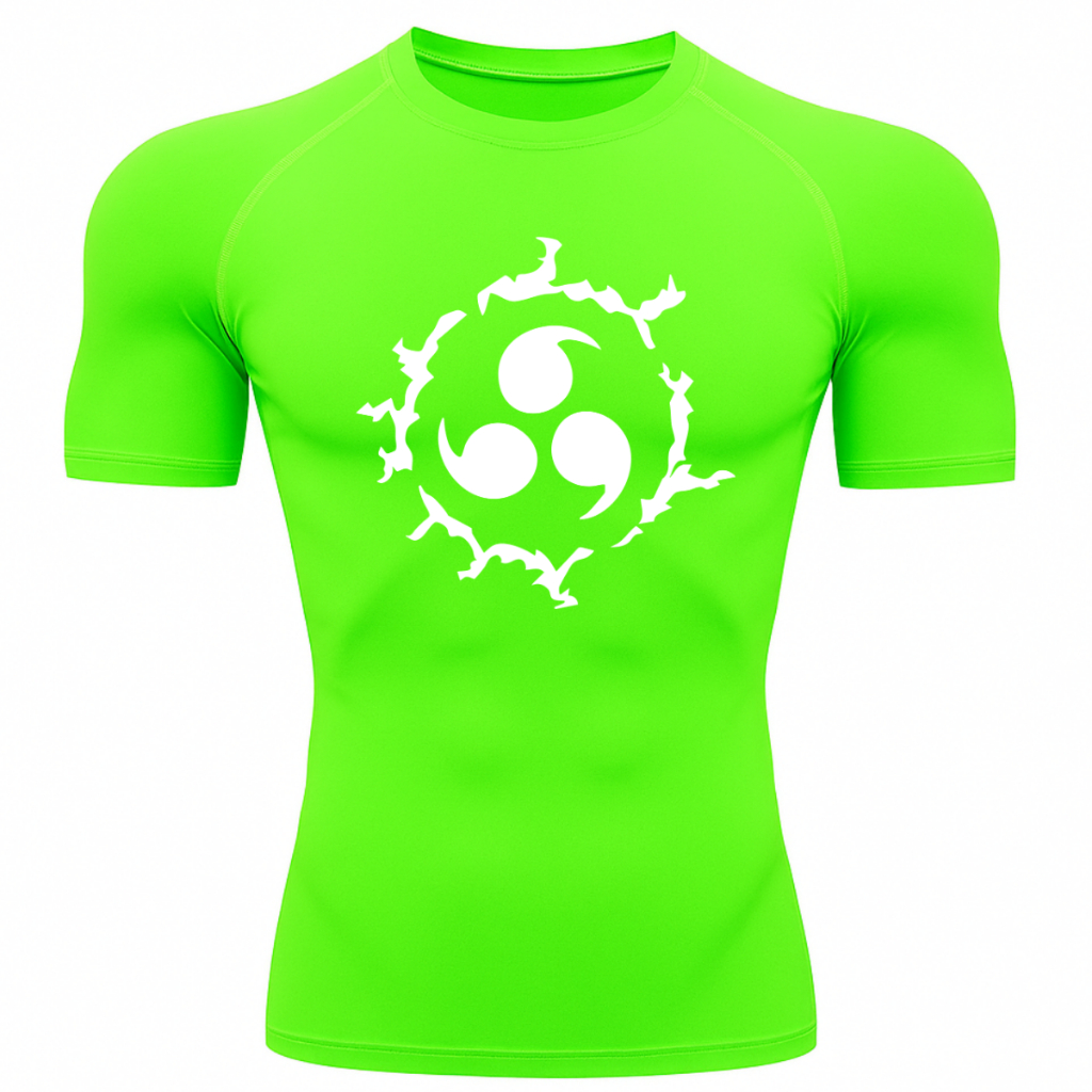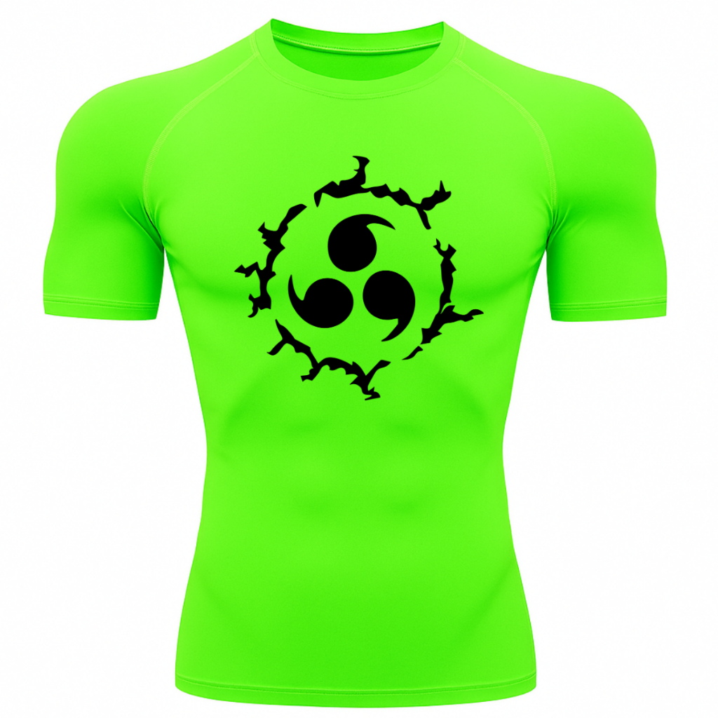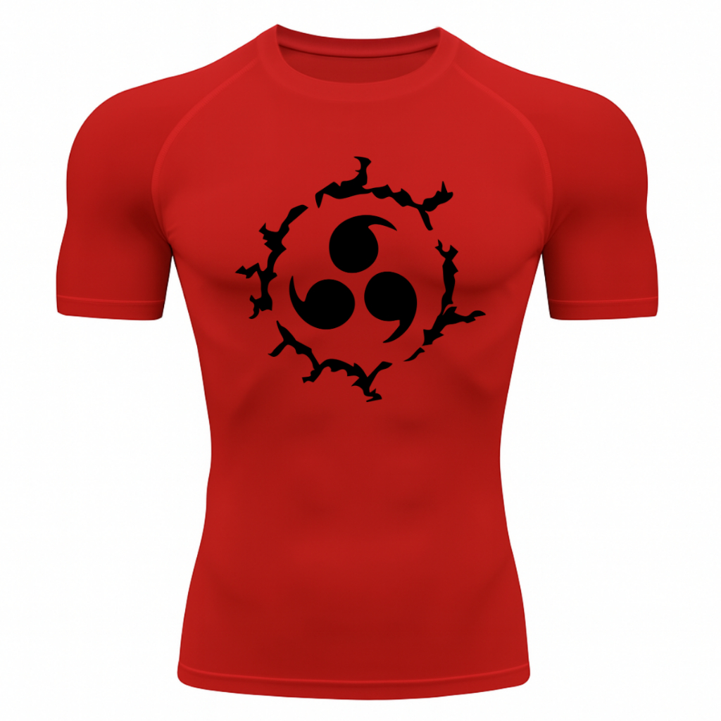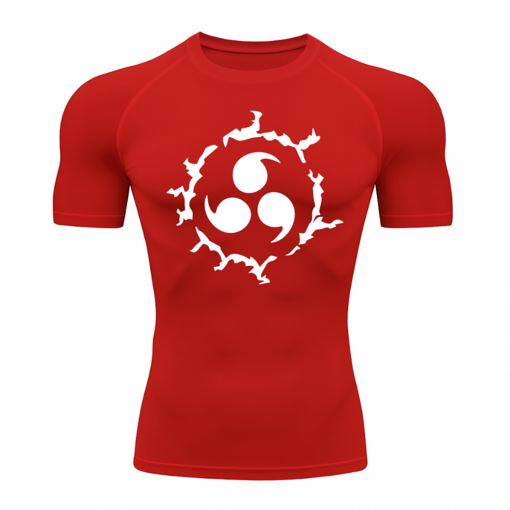 Camiseta Compressão Manga Curta Anime Naruto Símbolo Marca Maldição Sasuke Rash Guard