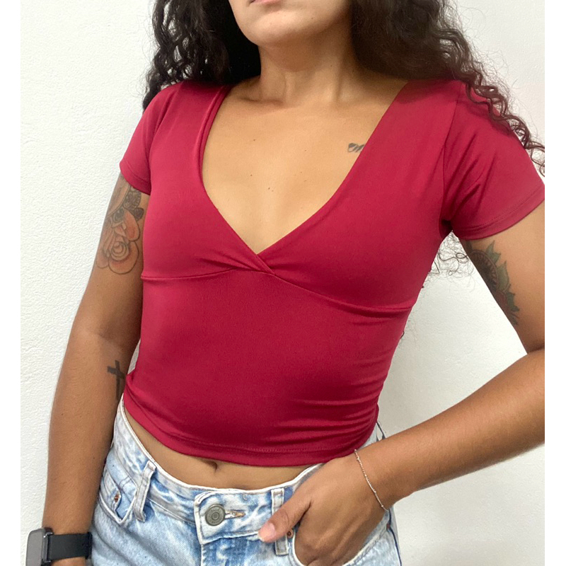 TOP TUBE CROPPED DECOTE V MANGA CURTA TRANSPASSADO