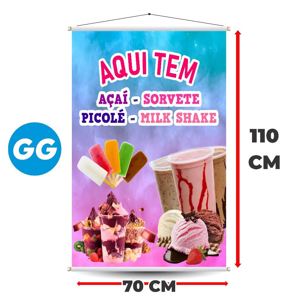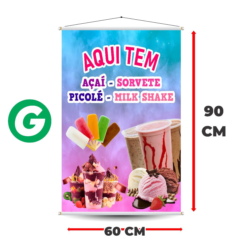 Banner Açaí sorvete picolé milk shake arte pronta aqui tem sorveteria OBS. NÃO ALTERAMOS A ARTE