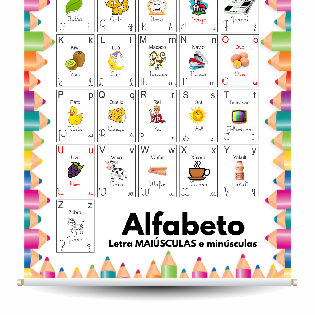 Banner escolar ALFABETO 4 FORMAS Alfabetização Educação infantil recurso pedagógico alfabeto ilustrado