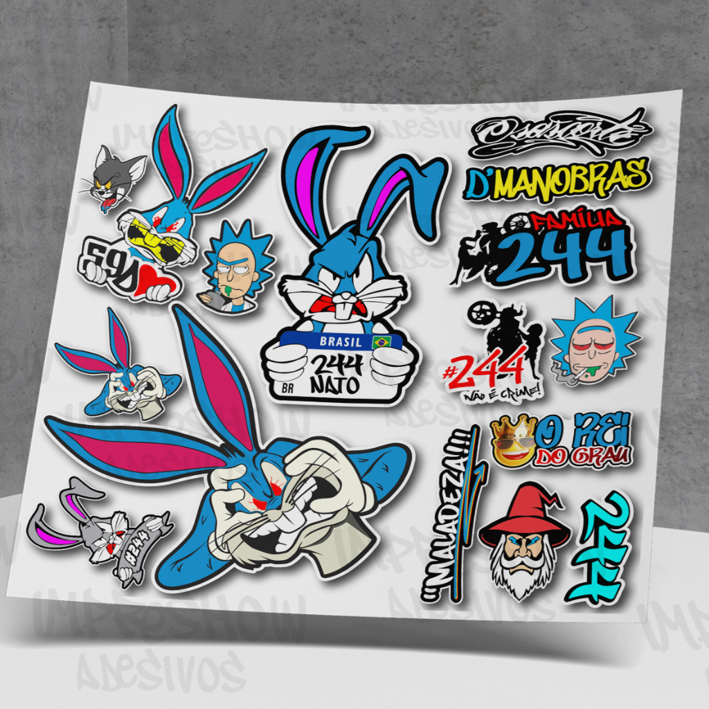 Cartela Adesivos Coelho Pernalonga 244 Para Moto Bike Carro grau montadinha