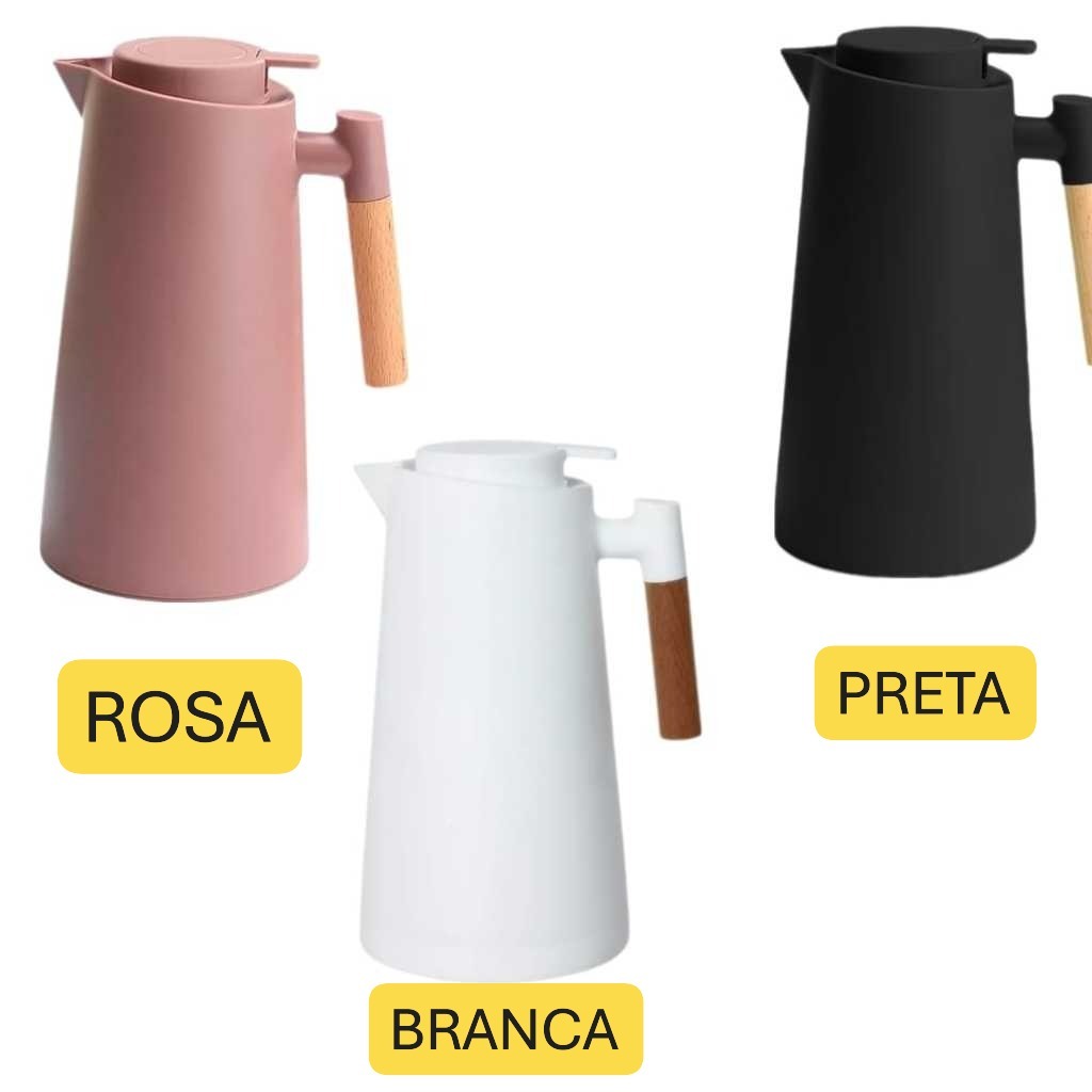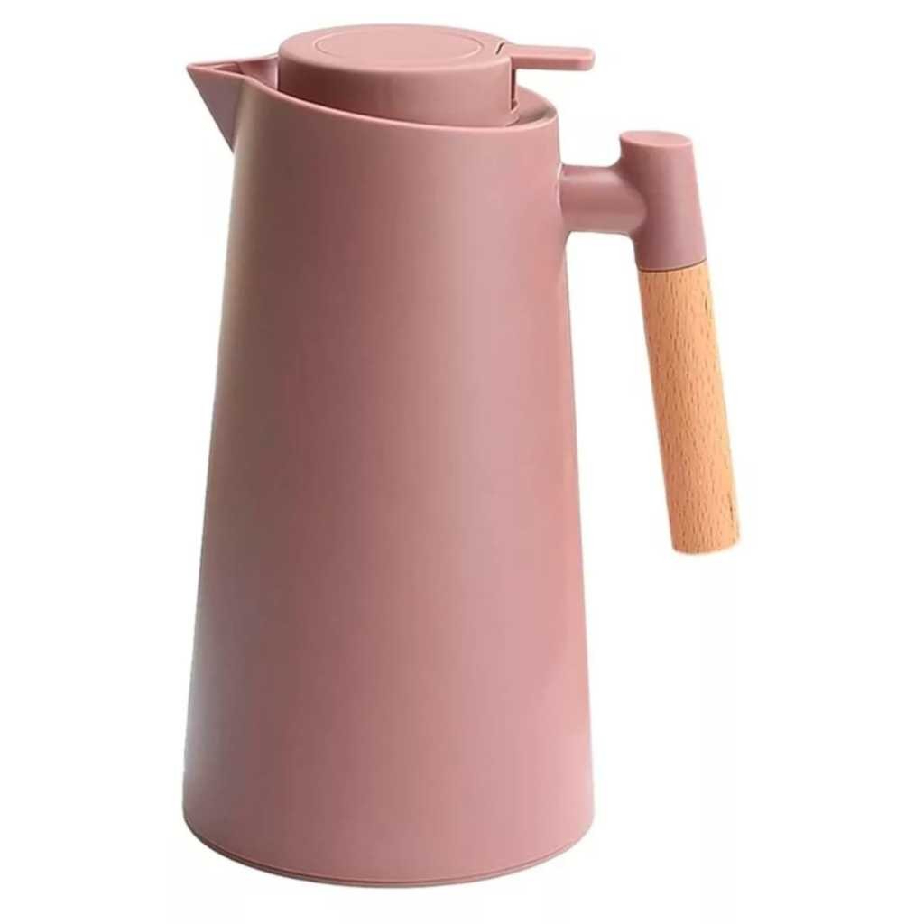 Garrafa Térmica Moderna 1L Cabo Madeira Botão Acionamento Click