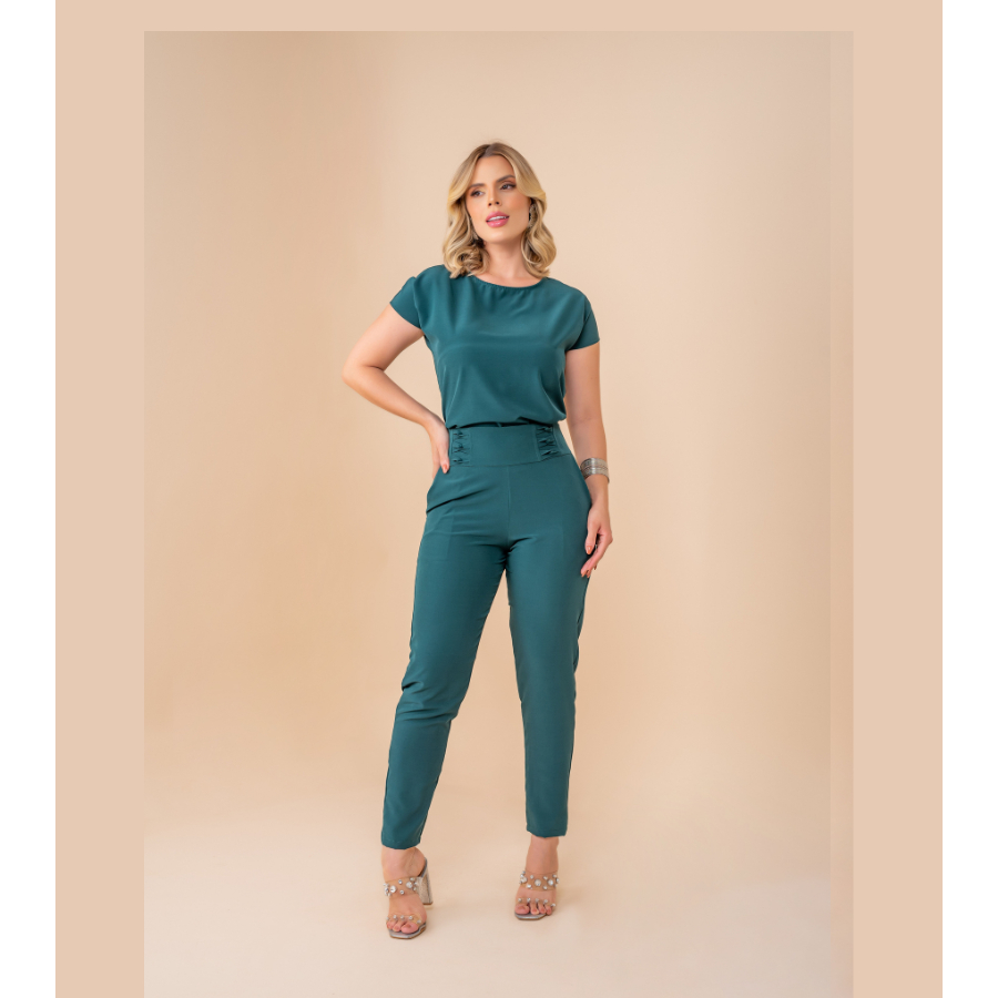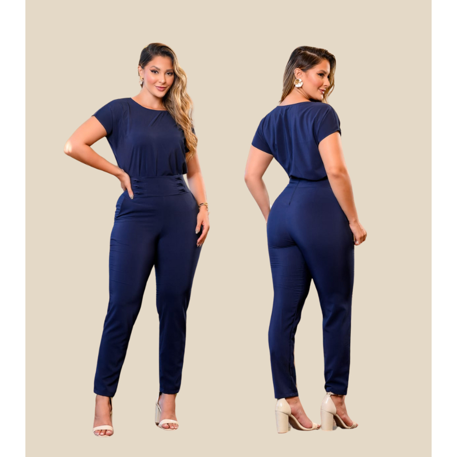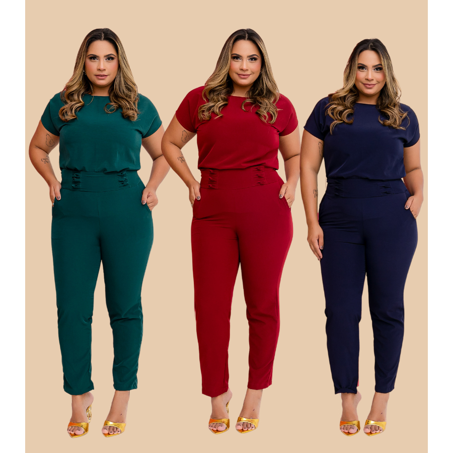 Conjunto Social Feminino Calça e Blusa com Manga Scrub Slim e Plus Size
