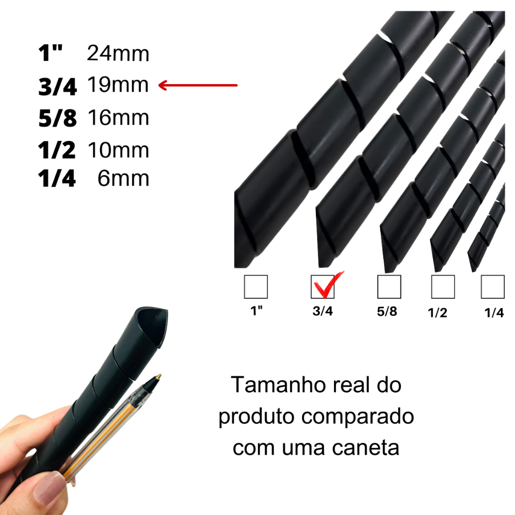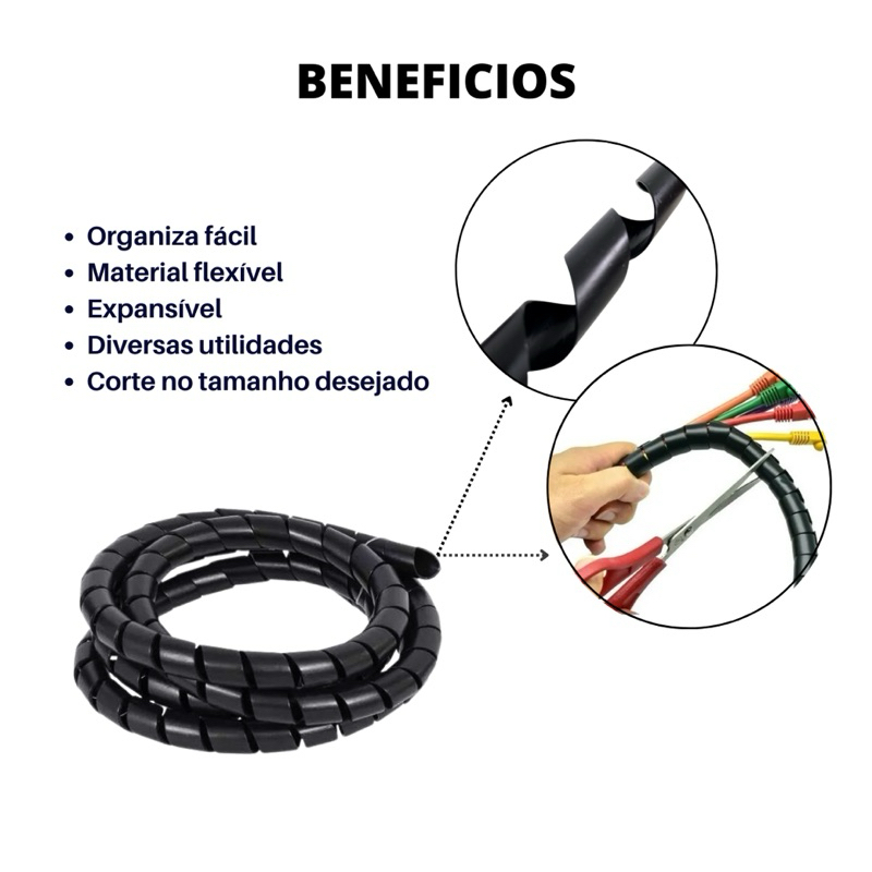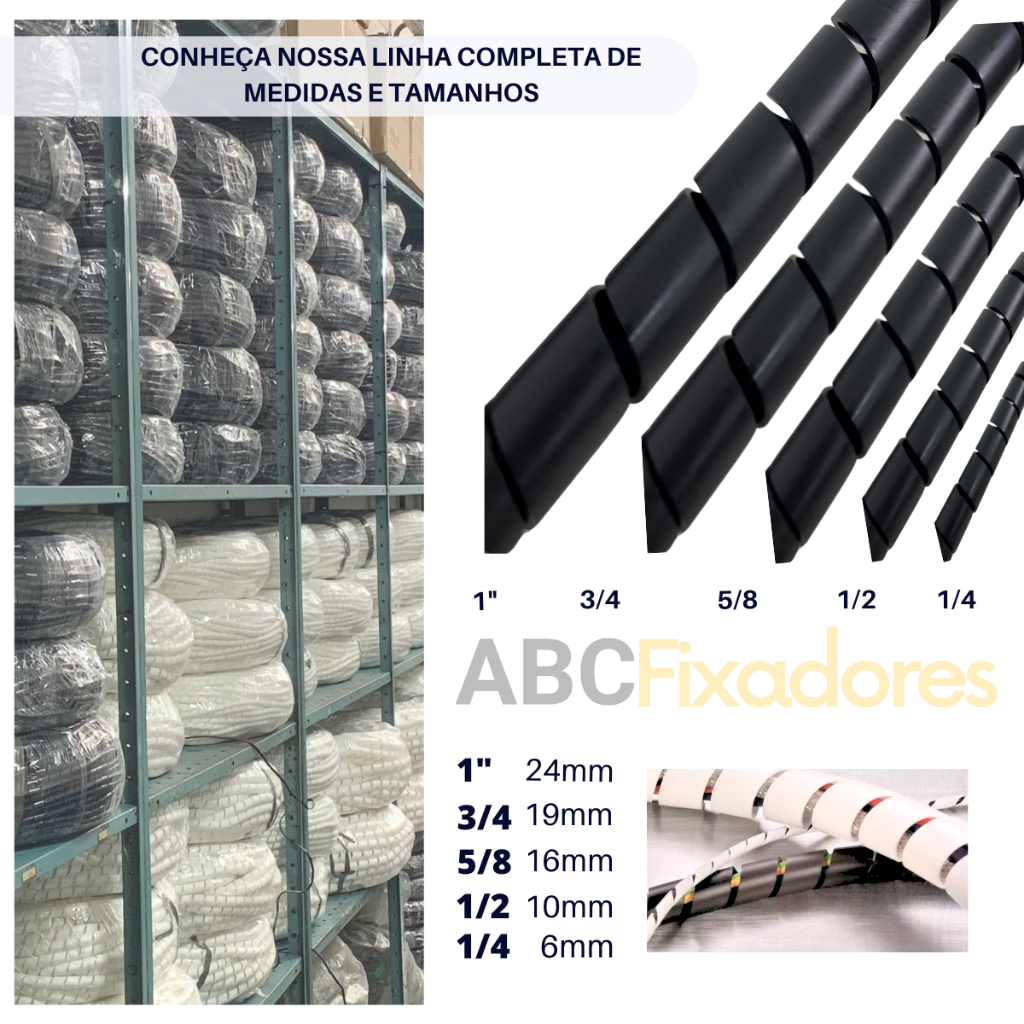 Organizador espiral para fios e cabos 19mm (3/4) - 1,3 e 5 metros