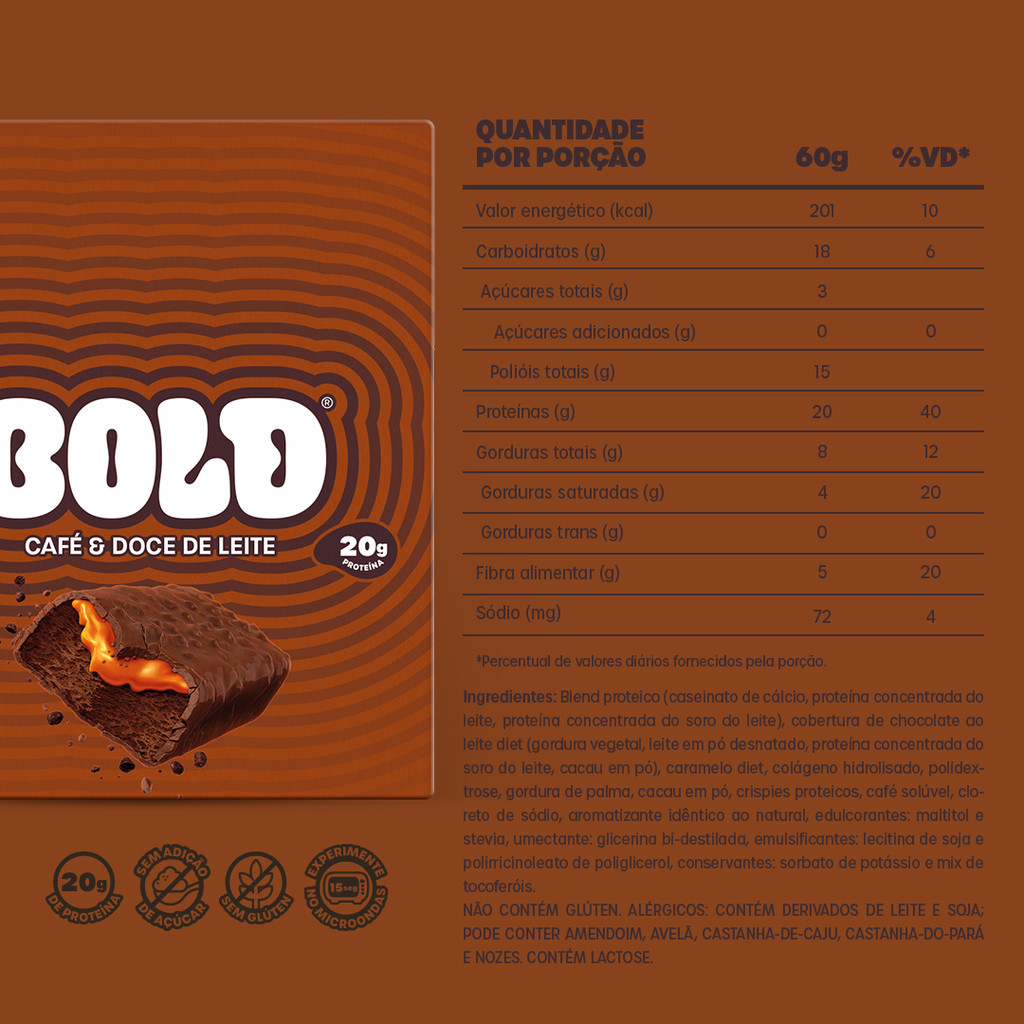 Barra de Proteína BOLD Snacks Café & Doce de Leite (20g de Proteína) - Caixa com 12 unidades