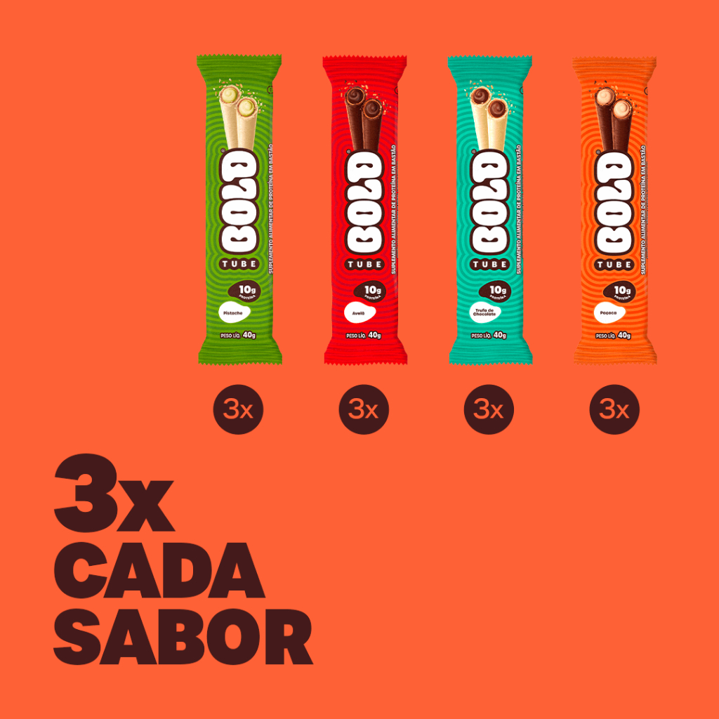 Chocolate Proteico BOLD Tube Caixa Mista 10g de Proteína (12 unidades)