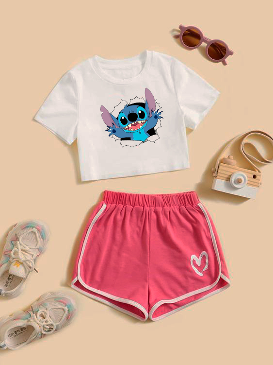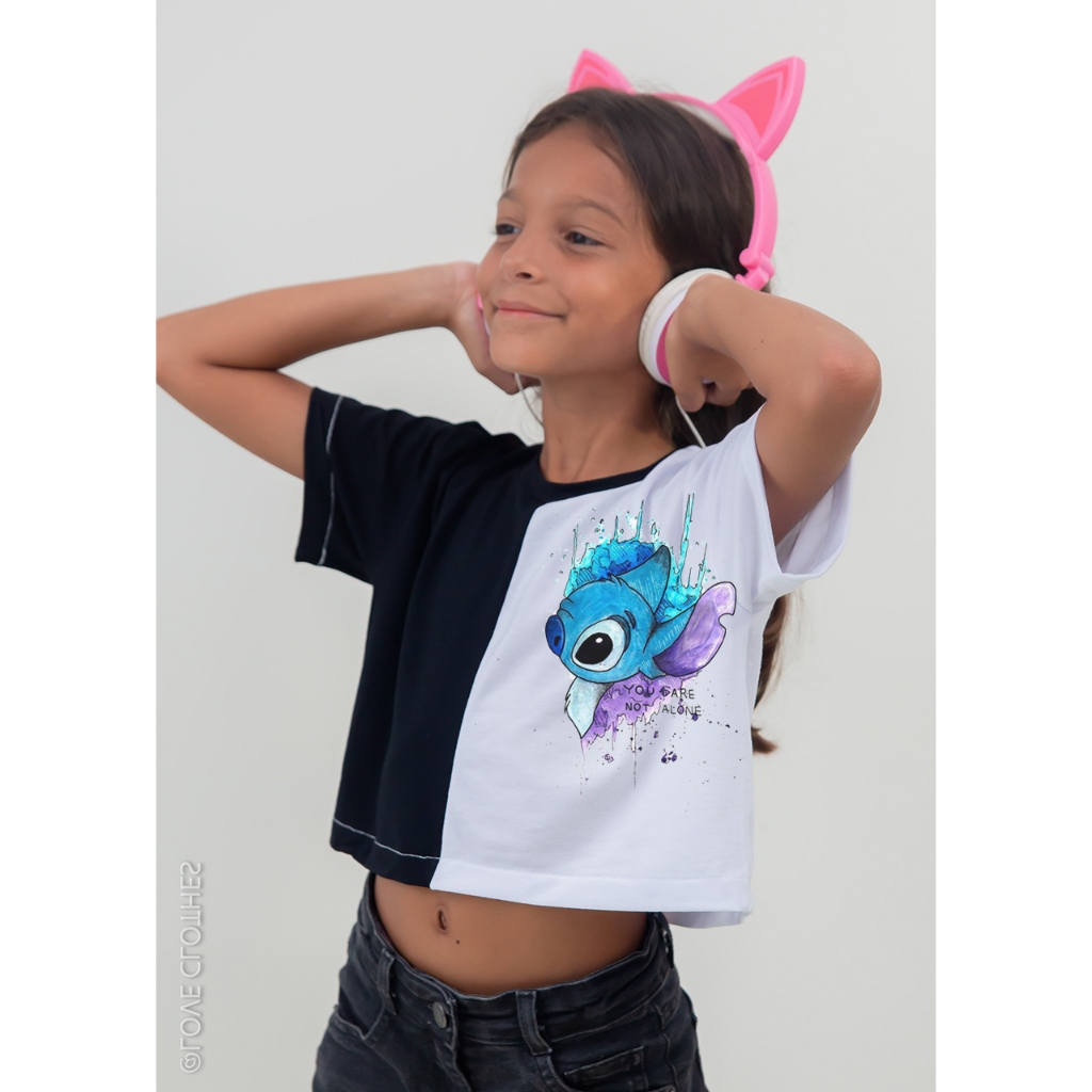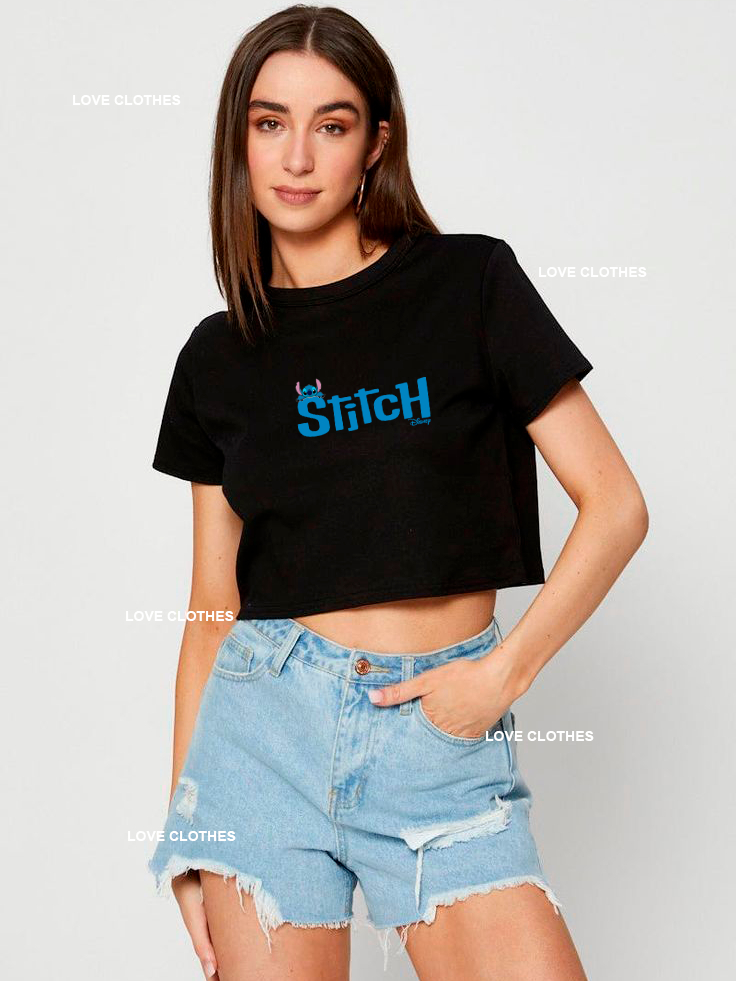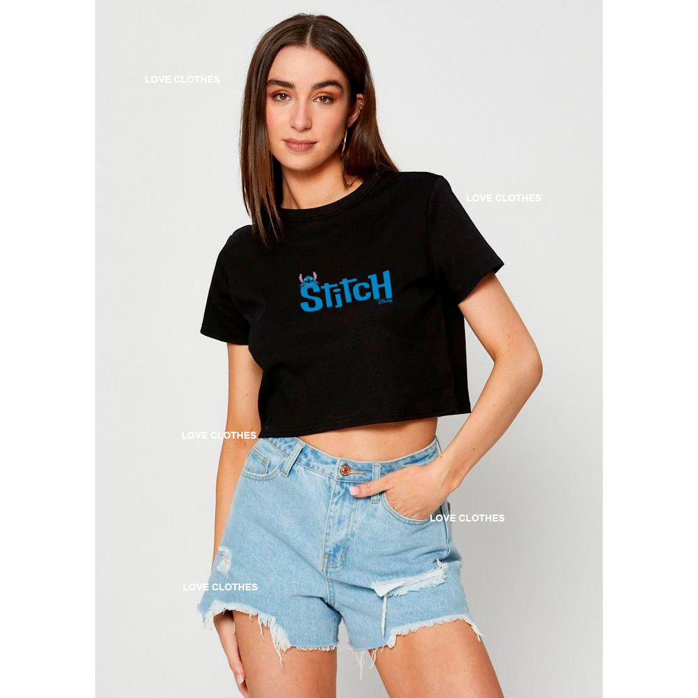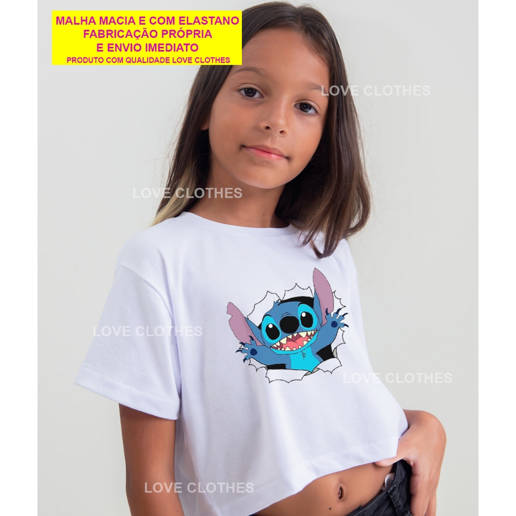 Cropped Feminino Blusa Camiseta Infantil Adulto Stitch Capivara Ballet Divertidamente