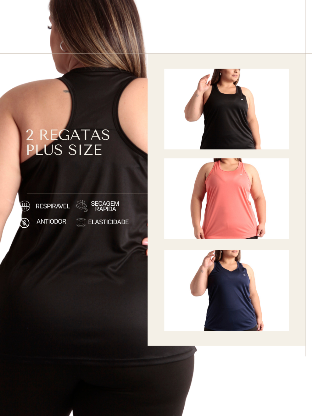 Kit 2 Regatas Plus Size Dry Fit Feminina Academia