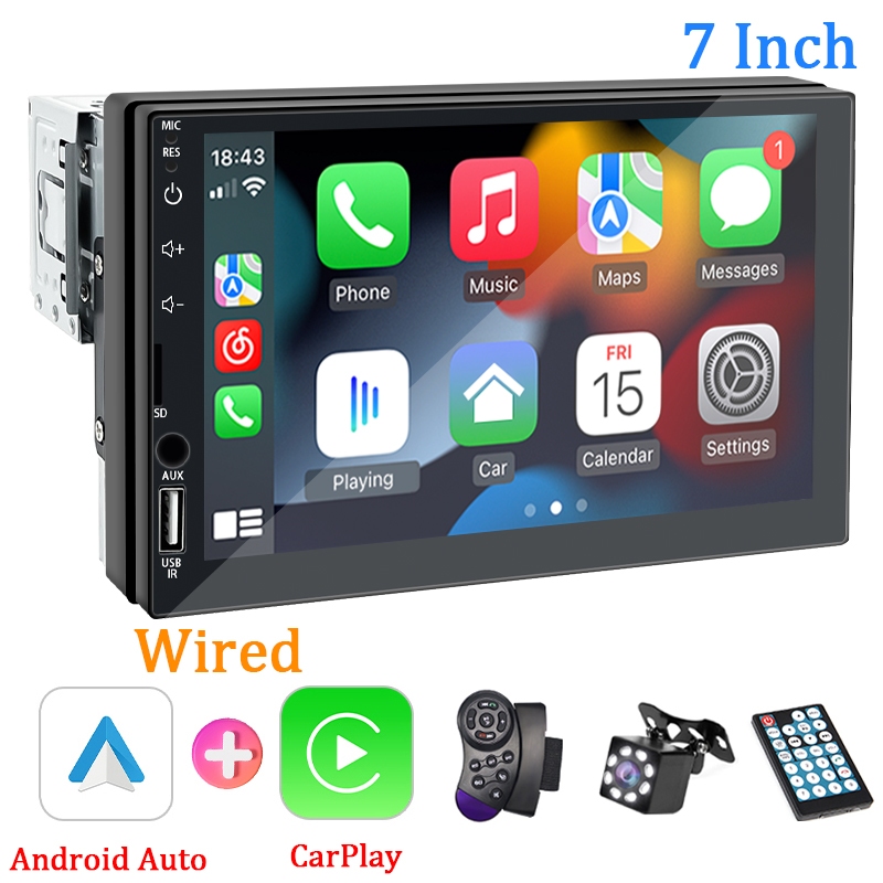 Central Multimídia Carplay 1 Din 7 Polegadas MP5 Bluetooth USB/AUX/TF Mirrorlink Com Tela De Toque