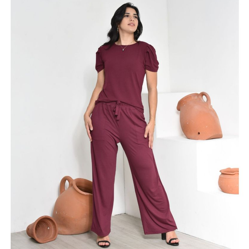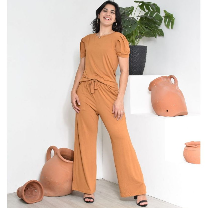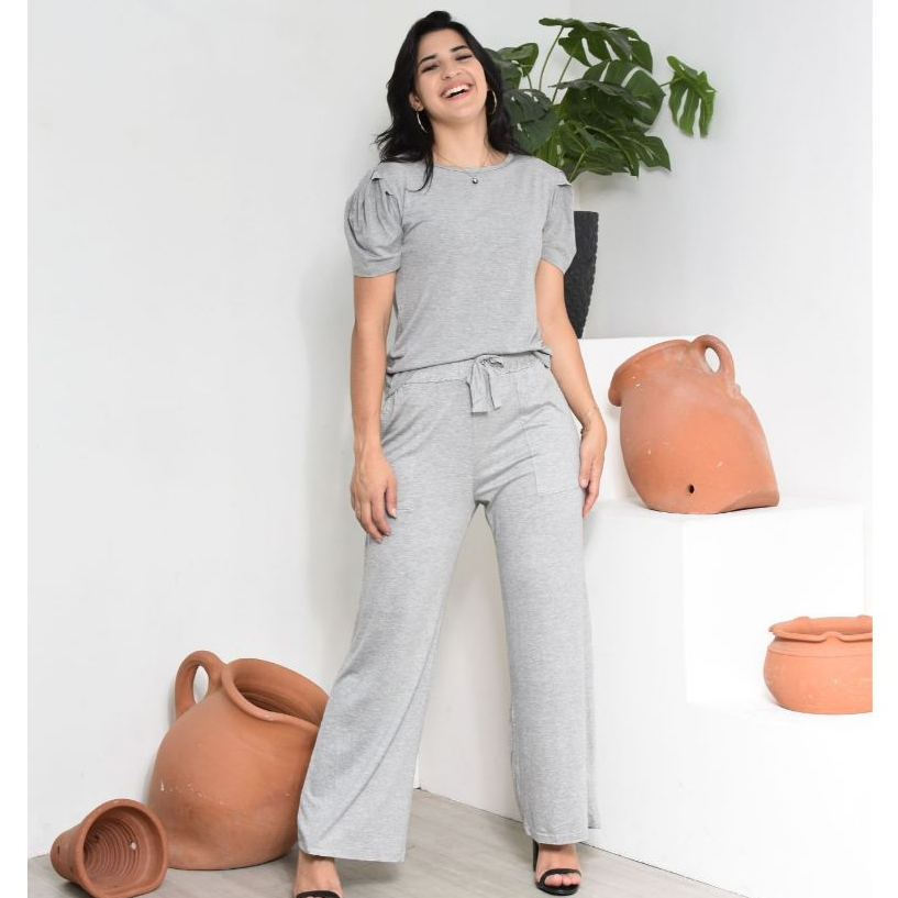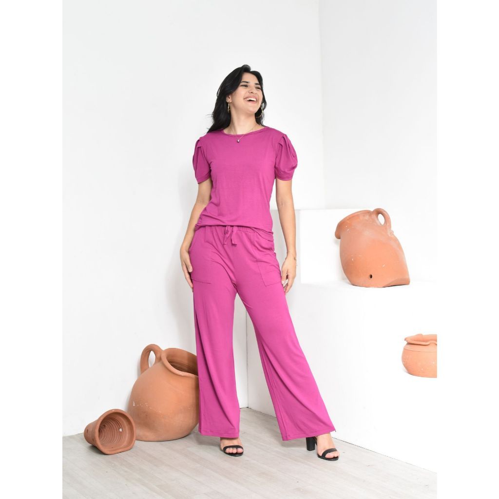 CONJUNTO VISCOLYCRA BLUSA MANGA PRINCESA E CALÇA PANTALONA