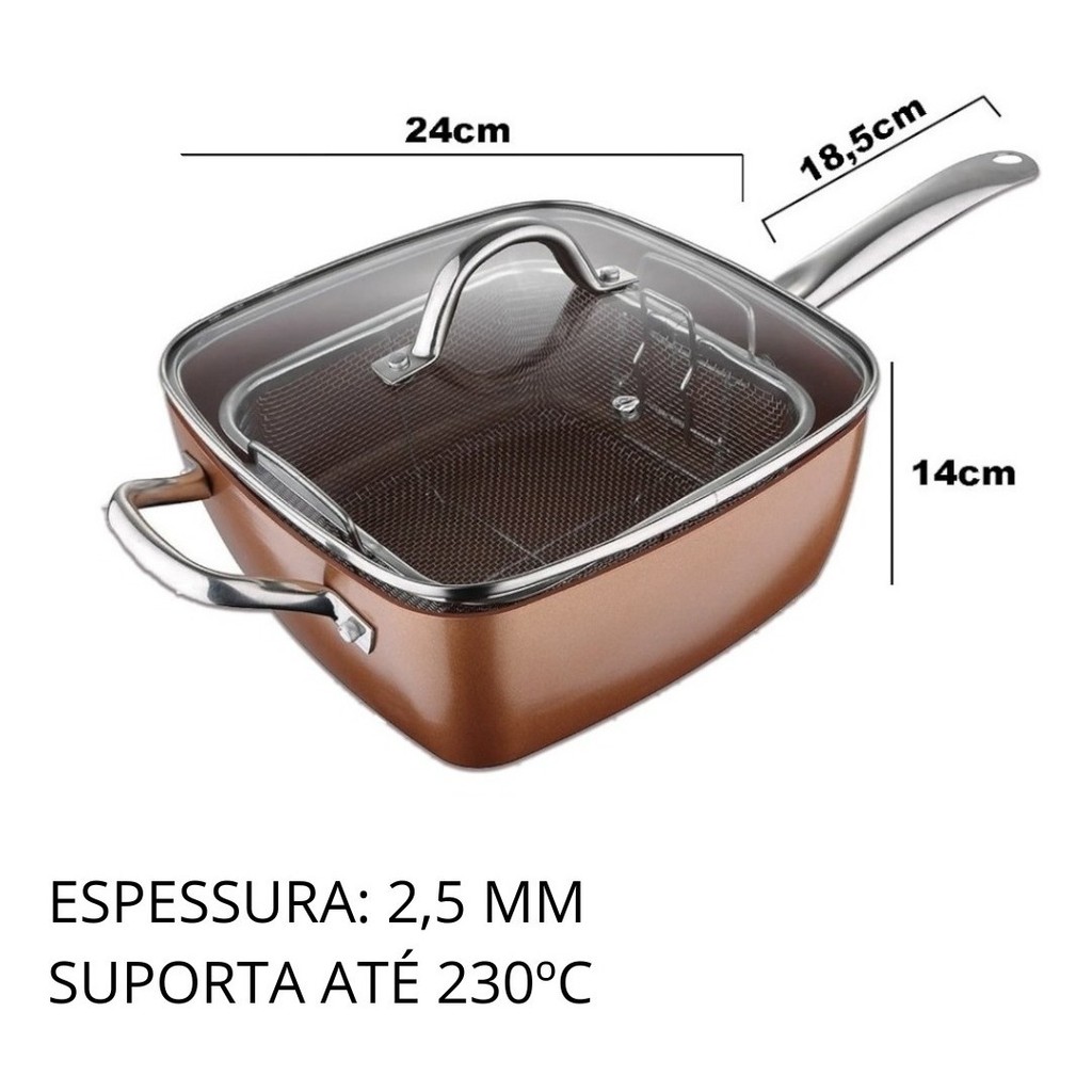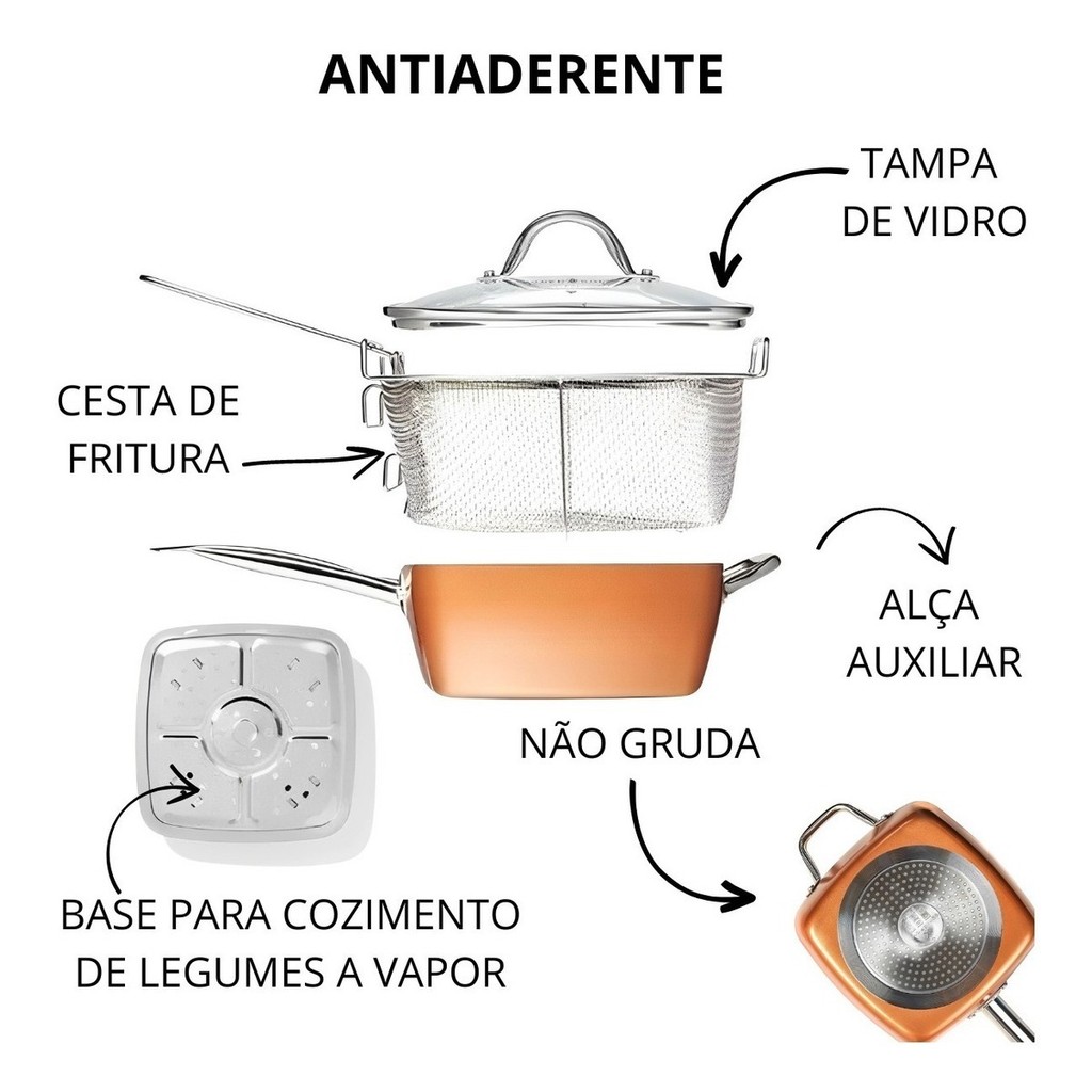 Panela Caçarola Quadrada Grande Antiaderente 4 em 1 Fogão Cozinha Inox Versátil Moderna