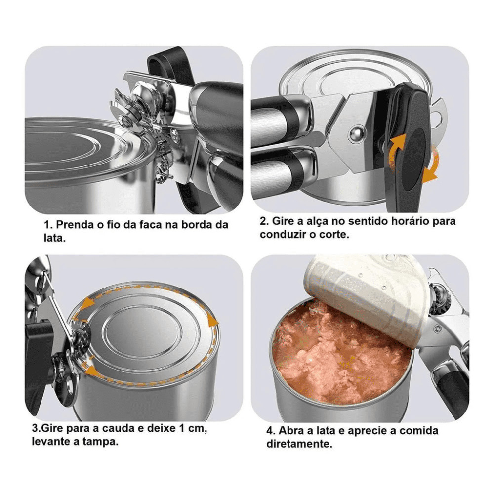 Abridor De Latas Inox Profissional Manivela Casa Cozinha Lata Garrafa Tampa