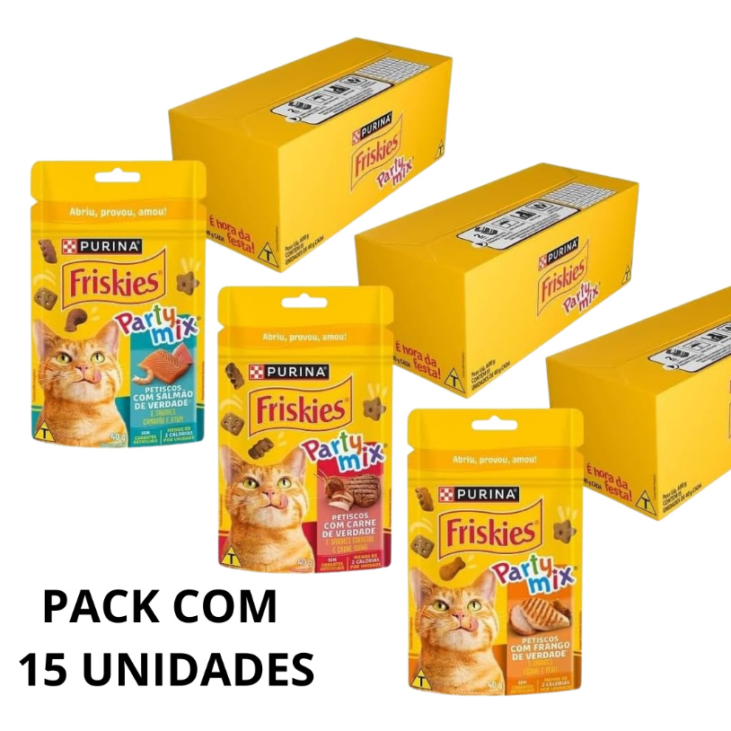FRISKIES® PARTY MIX Petisco para Gatos Adultos - TODOS OS SABORES - 40g - PACK 15 Unidades