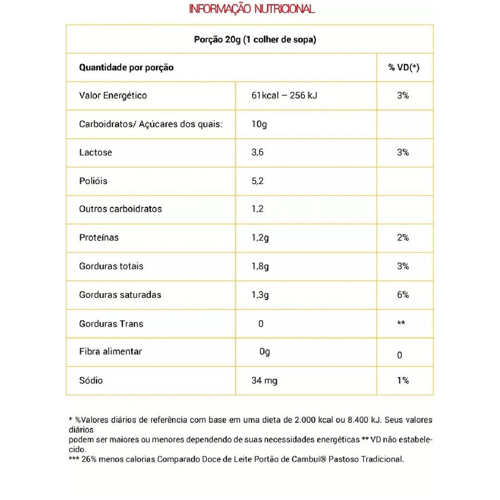 Doce de Leite Pastoso Zero Acucar Pote 215g Portao de Cambui