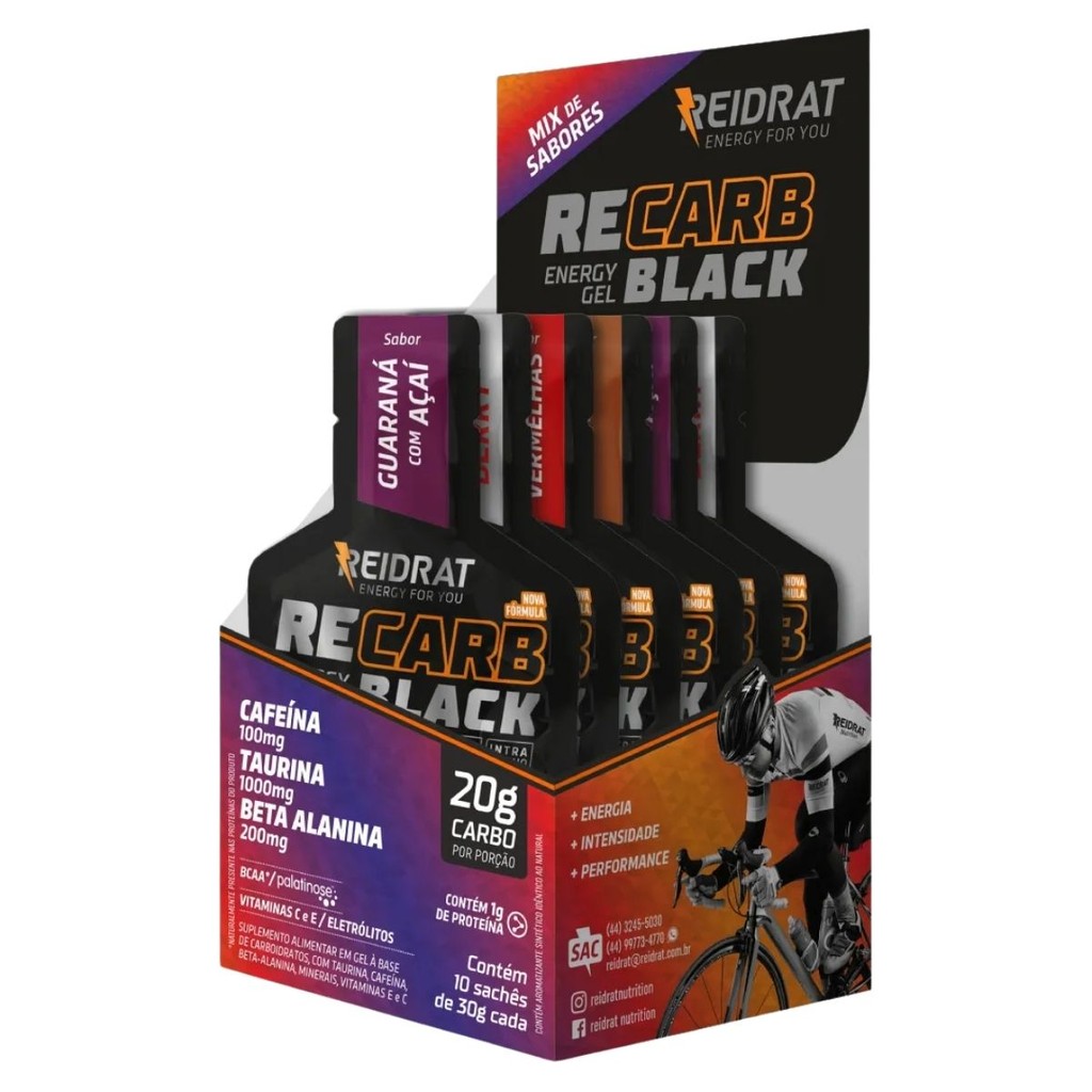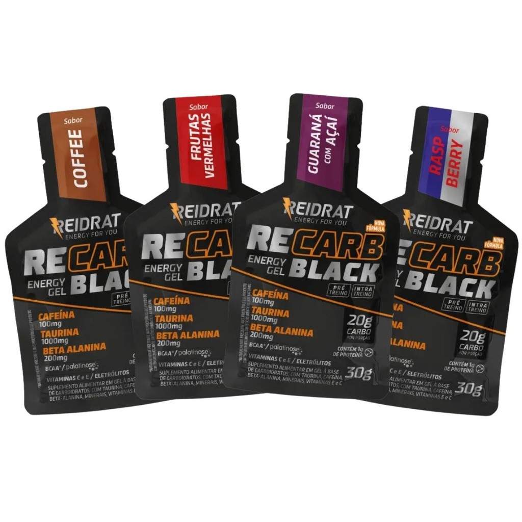 Recarb Energy Gel Black Caixa Com 10 Unidades De 30g Reidrat Nutrition Mix De Sabores