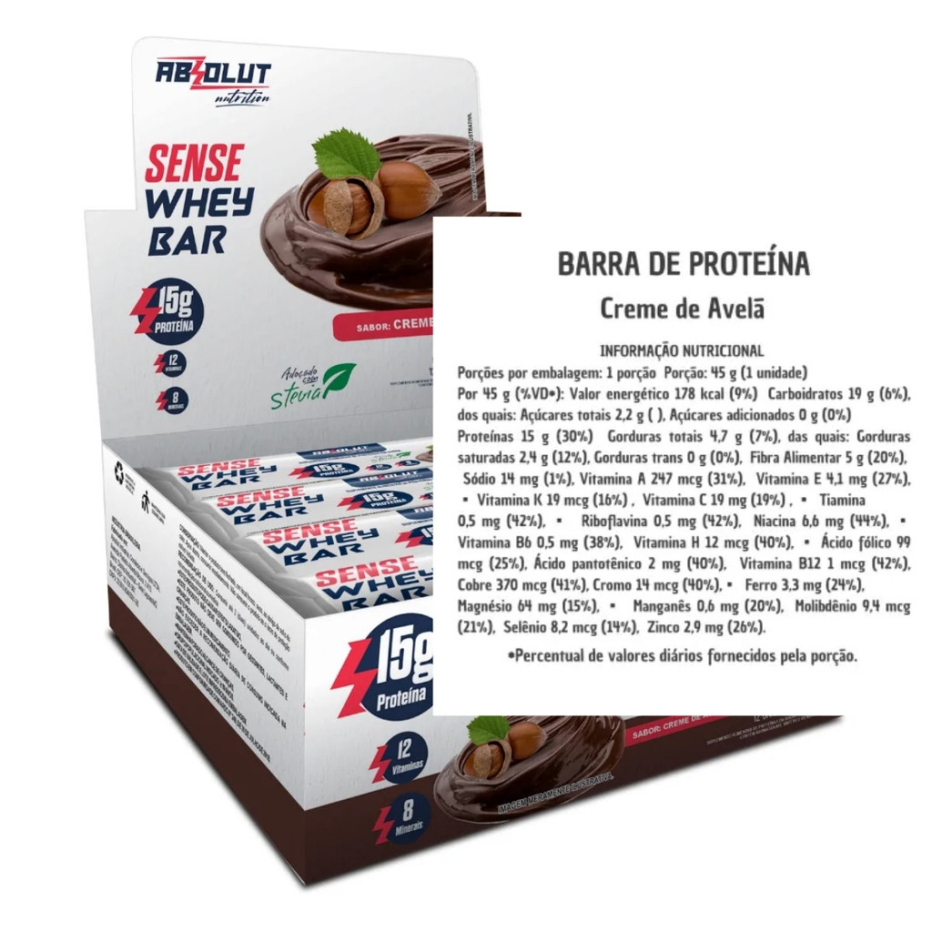 Sense Whey Bar Caixa Com 12 Unidades de 45g Absolut Nutrition Creme De Avelã