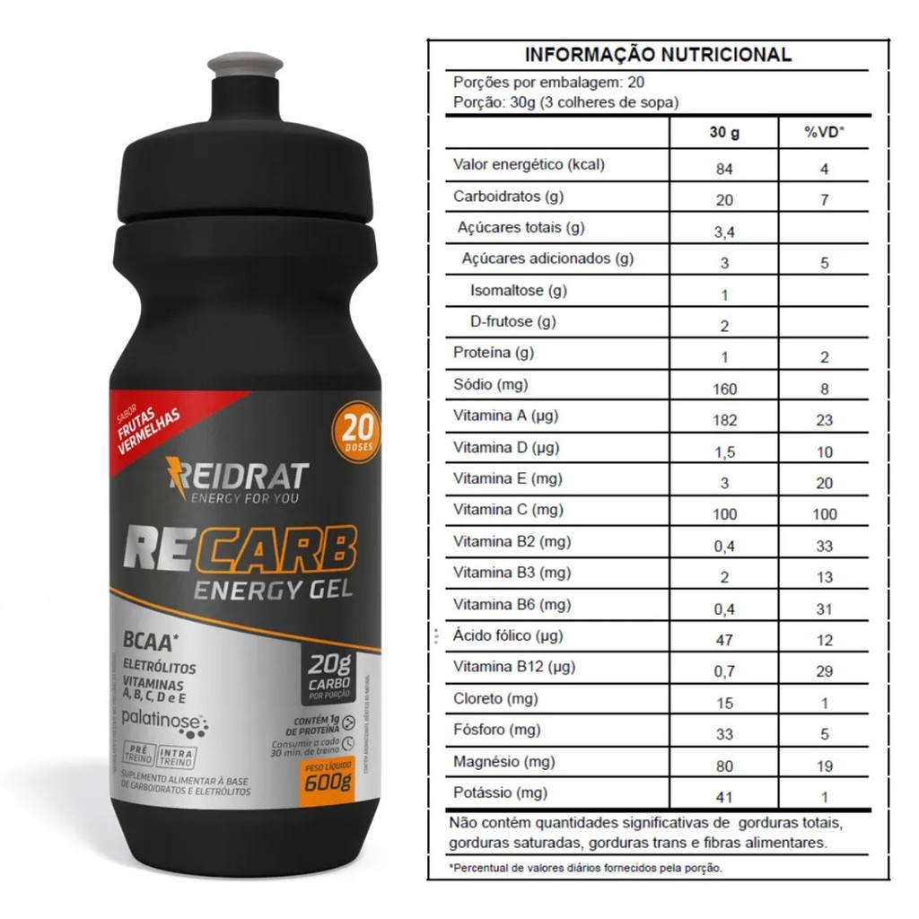 Recarb Energy Gel Squeeze 600G Reidrat Nutrition Frutas Vermelhas