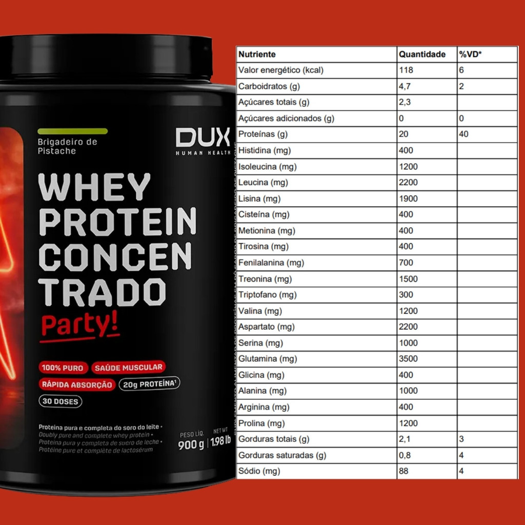 Whey Protein Concentrado Party! Pote 900g Sabor Brigadeiro De Pistache Dux Human Health
